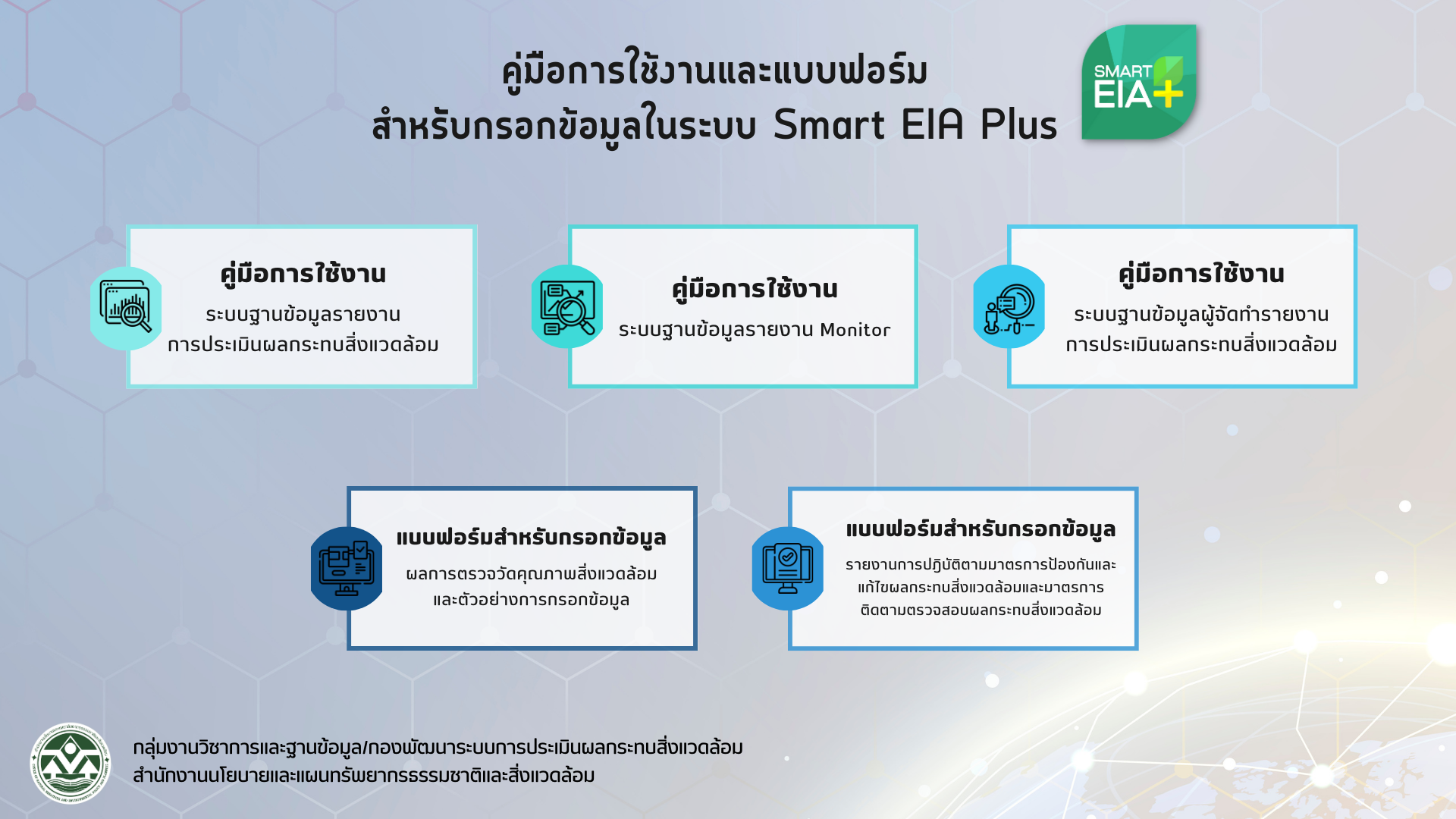 คู่มือการใช้งาน 1. คู่มือการใช้งานระบบ EIA 2. คู่มือการใช้งานระบบ Monitor 3. คู่มือการใช้งานระบบผู้มีสิทธิจัดทำรายงาน หมายเหตุ : รับชมคลิปวิดีโอย้อนหลัง "การอบรม เรื่อง การใช้งานศูนย์ข้อมู,การประเมินผลกระทบสิ่งแวดล้อม Smart EIA Plus" ศึกษาขั้นตอน "การจัดการสิทธิ"