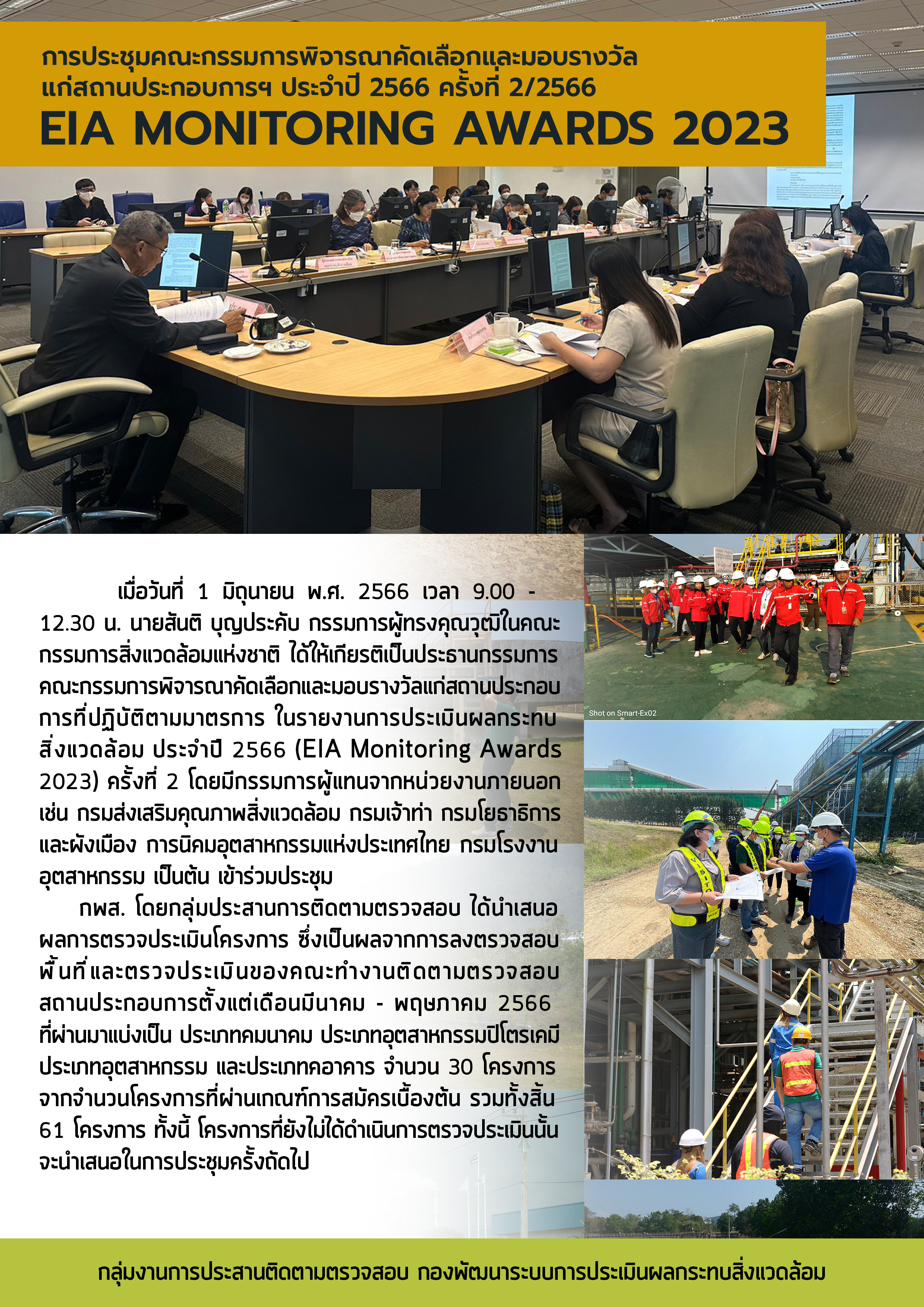 การประชุมคณะกรรมการพิจารณารายงานคัดเลือกและมอบรางวัล แก่สถานประกอบการฯ ประจำปี 2566 ครั้งที่ 2/2566 EIA Monitoring Awards 2023