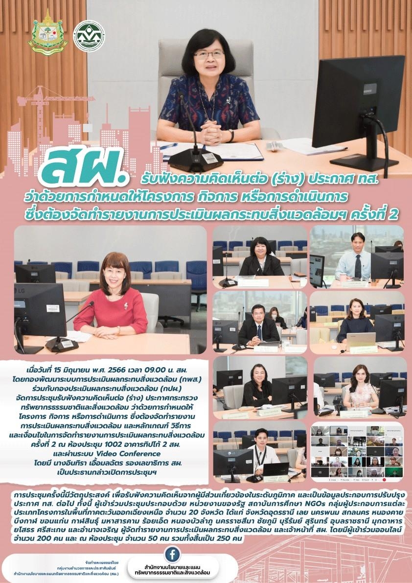 รับฟังความคิดเห็นต่อ (ร่าง) ประกาศ ทส. ว่าด้วยการกำหนดให้โครงการ กิจการ หรือการดำเนินการ ซึ่งต้องจัดทำรางานการประเมินผลกระทบสิ่งแวดล้อมฯ ครั้งที่ 2