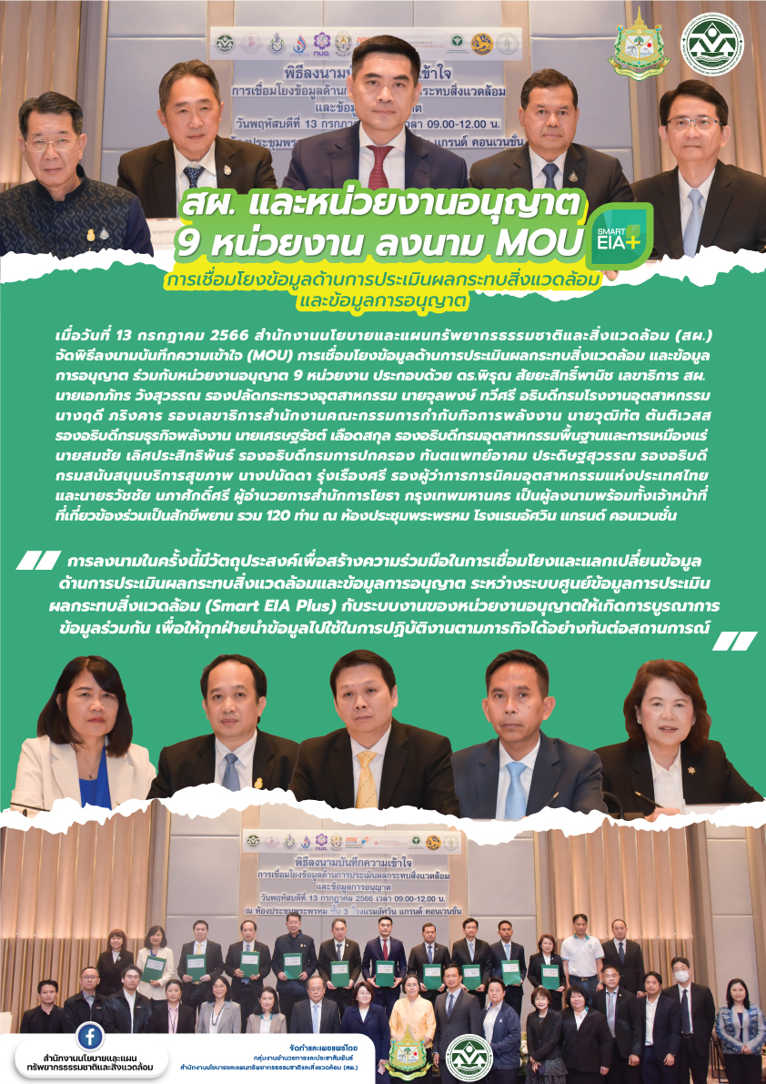 พิธีลงนามบันทึกความเข้าใจ (MOU) การเชื่อมโยงข้อมูลการประเมินผลกระทบสิ่งแวดล้อม และข้อมูลการอนุญาต