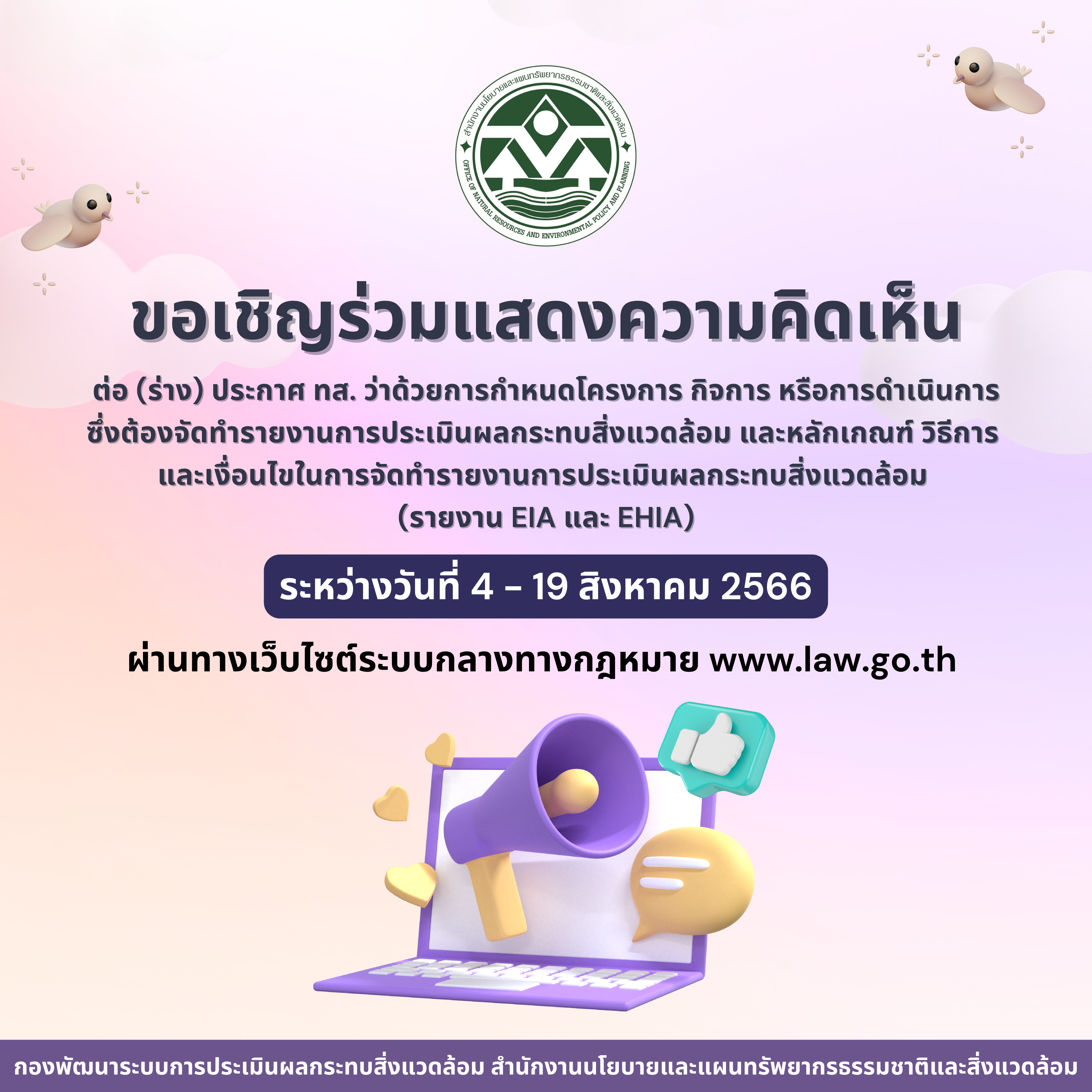 1. (ร่าง) ประกาศกระทรวงทรัพยากรธรรมชาติและสิ่งแวดล้อม เรื่อง กำหนดโครงการ กิจการ หรือการดำเนินการ