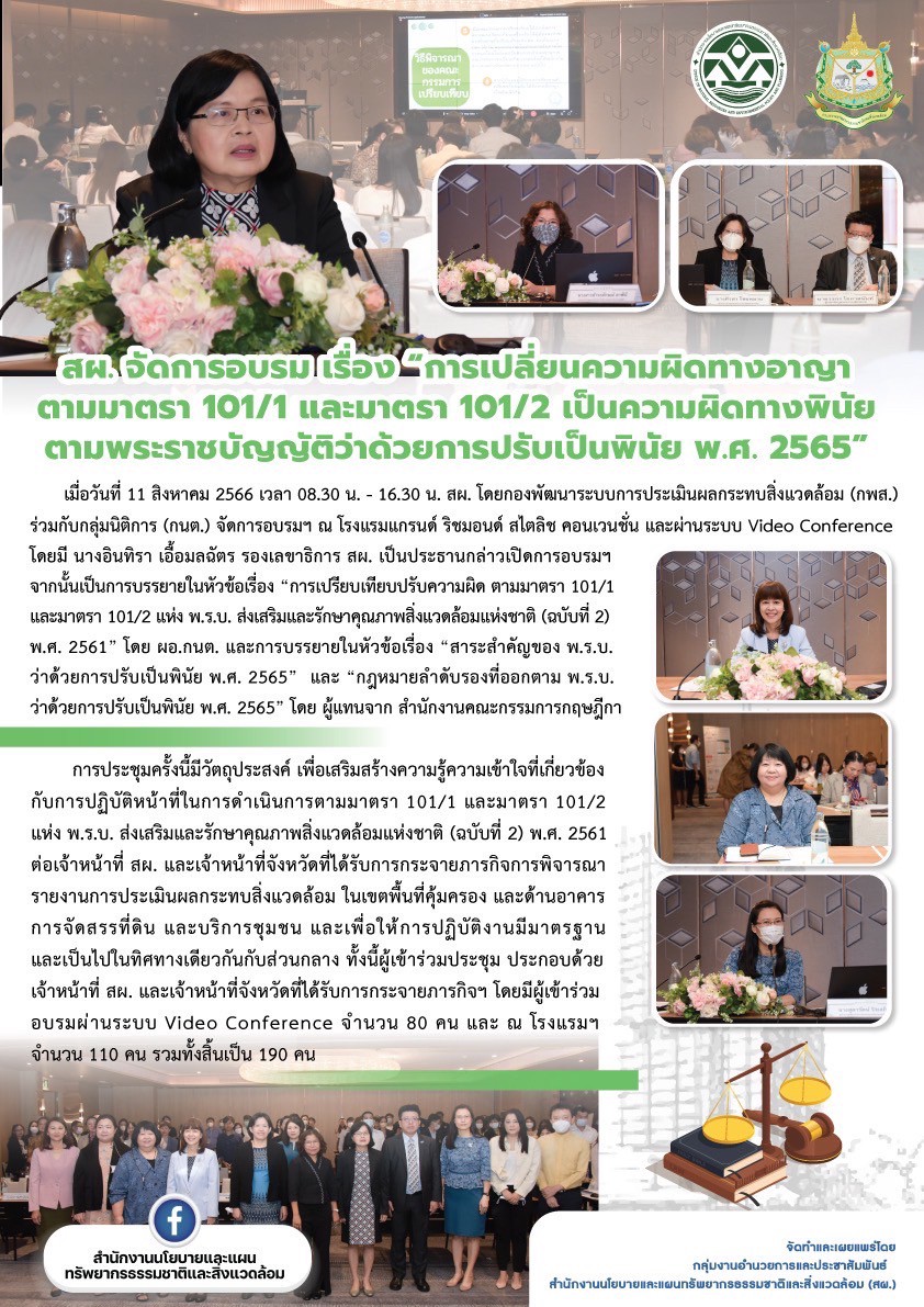 จัดอบรม เรื่อง การเปลี่ยนความผิดทางอาญาตามมาตรา 101/1 และมาตรา 101/2 เป็นความผิดทางพินัยตามพระราชบัญญัติว่าด้วยการปรับเป็นพินัย พ.ศ. 2565