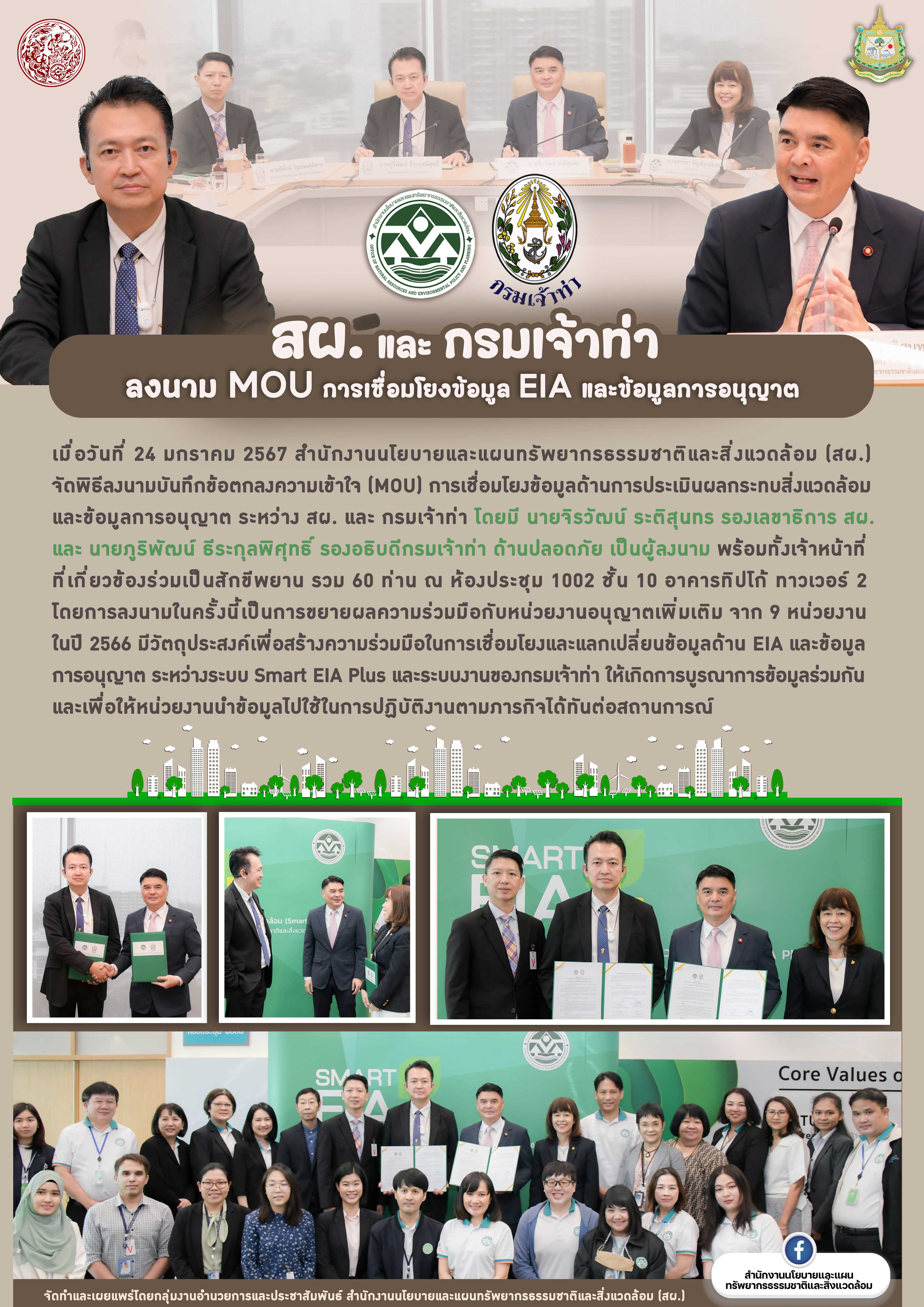 พิธีลงนามความเข้าใจการเชื่อมโยงข้อมูลด้านการประเมินผลกระทบสิ่งแวดล้อม และข้อมูลการอนุญาต ระหว่าง สผ. กับ กรมเจ้าท่า