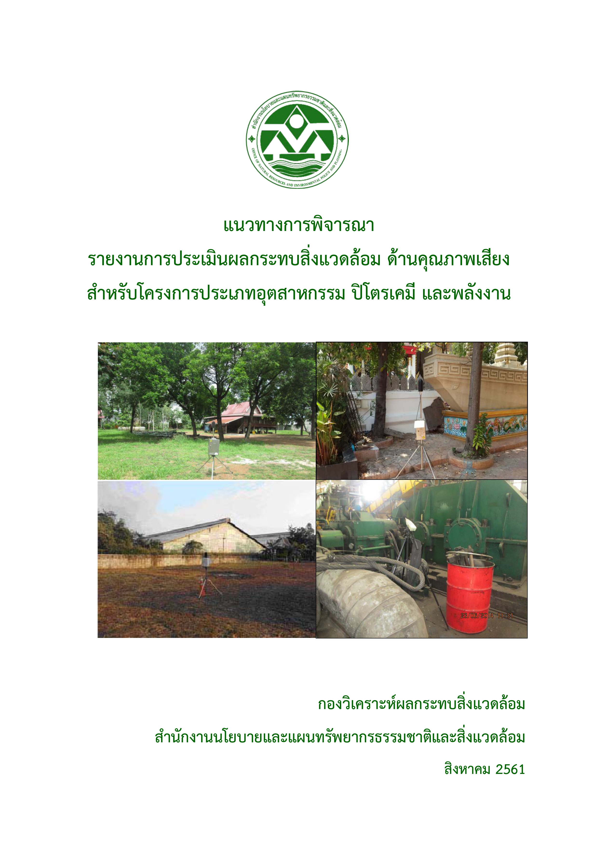 แนวทางการพิจารณารายงานการประเมินผลกระทบสิ่งแวดล้อม ด้านคุณภาพเสียง สำหรับโครงการประเภทอุตสาหกรรม ปิโตรเคมี และพลังงาน พ.ศ. 2561