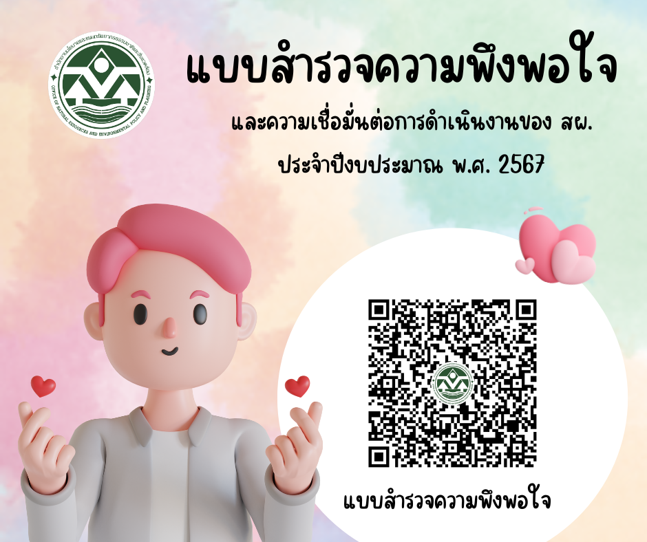ร่วมแสดงความคิดเห็นผ่าน แบบสำรวจความพึงพอใจ ความไม่พึงพอใจ และความเชื่อมั่นต่อการดำเนินงานของ สผ. ประจำปีงบประมาณ พ.ศ. 2567