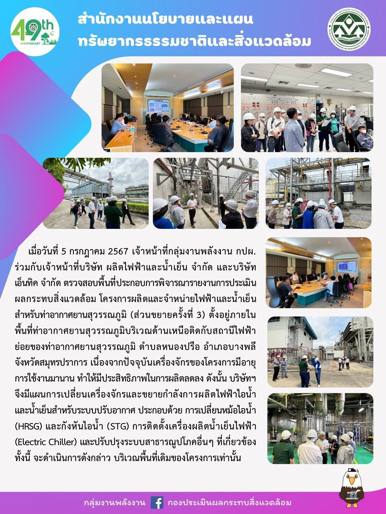 ตรวจสอบพื้นที่โครงการประกอบการพิจารณารายงานการประเมินผลกระทบสิ่งแวดล้อม โครงการผลิตและจำหน่ายไฟฟ้าและน้ำเย็น สำหรับท่าอากาศยานสุวรรณภูมิ (ส่วนขยายครั้งที่ 3)