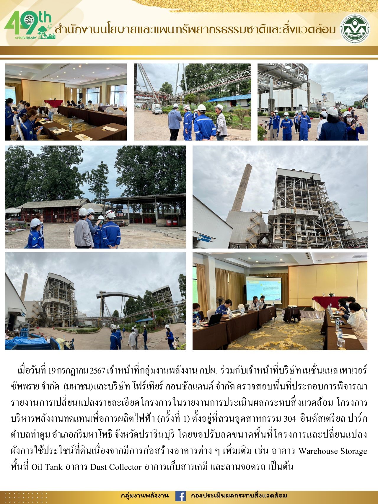 ตรวจสอบพื้นที่โครงการประกอบการพิจารณารายงานการเปลี่ยนแปลงรายละเอียดโครงการในรายงานการประเมินผลกระทบสิ่งแวดล้อม โครงการบริหารพลังงานทดแทนเพื่อการผลิตไฟฟ้า (ครั้งที่ 1)