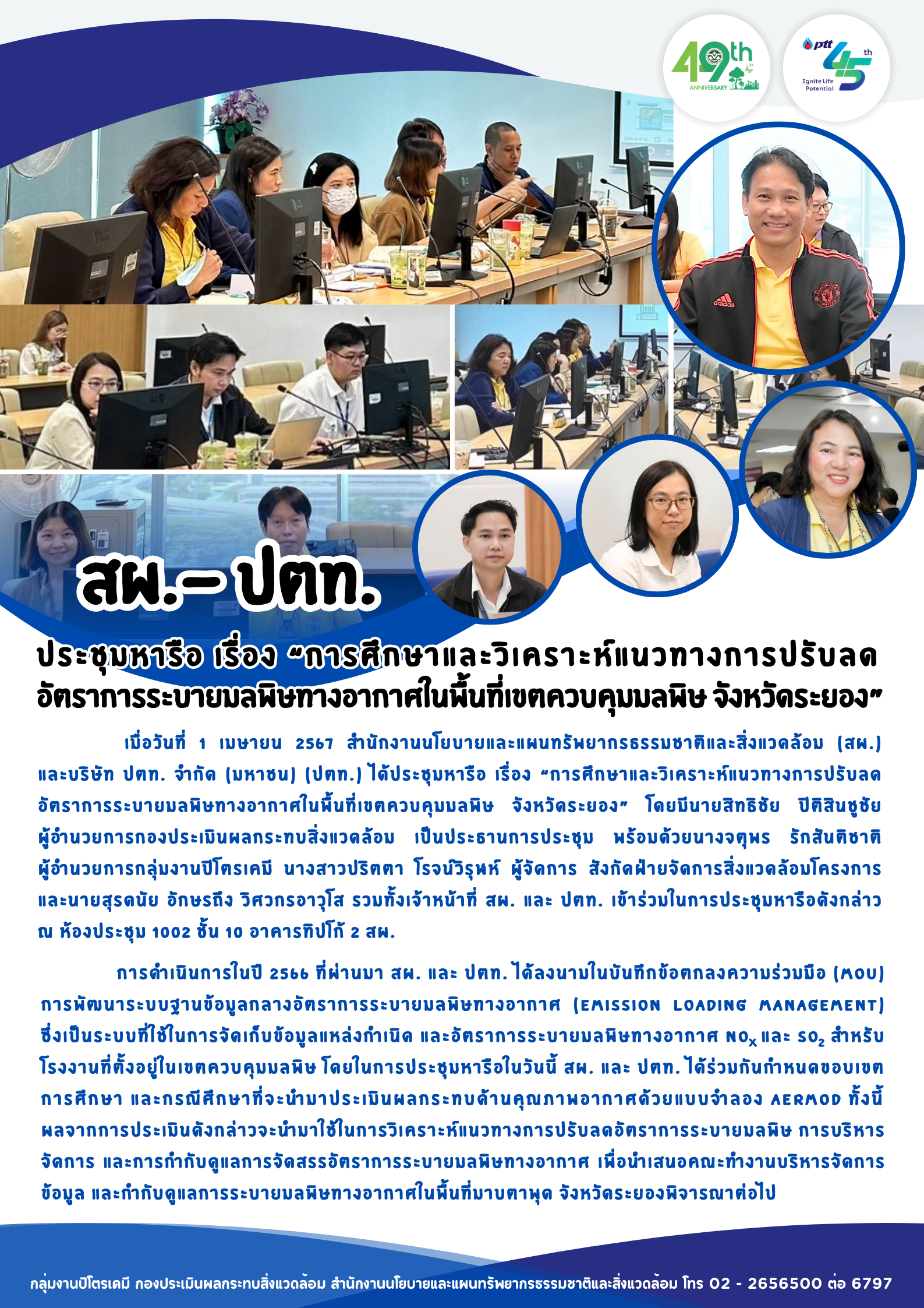 ประชุมหารือ เรื่องการศึกษาและวิเคราะห์แนวทางการปรับลดอัตราการระบายมลพิษทางอากาศในพื้นที่เขตควบคุมมลพิษ จังหวัดระยอง