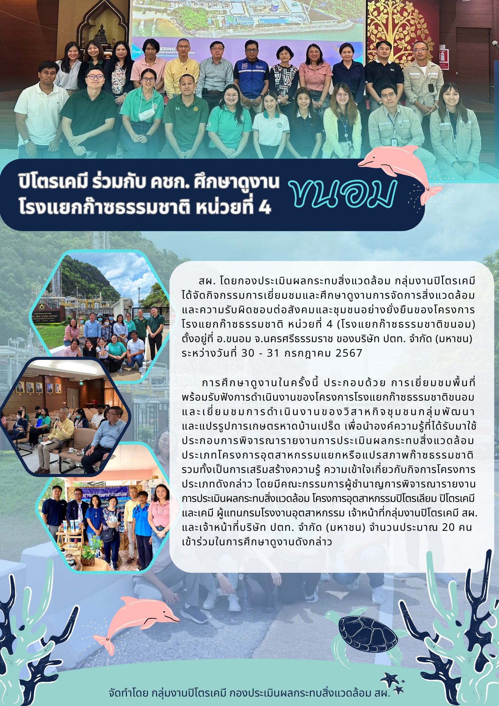 กิจกรรมเยี่ยมชมและศึกาาดูงานการจัดการสิ่งแวดล้อมและความรับผิดชอบต่อสังคมและชุมชนอย่างยั่งยืนของโครงการแยกกีาซธรรมชาติ หน่วยที่ 4