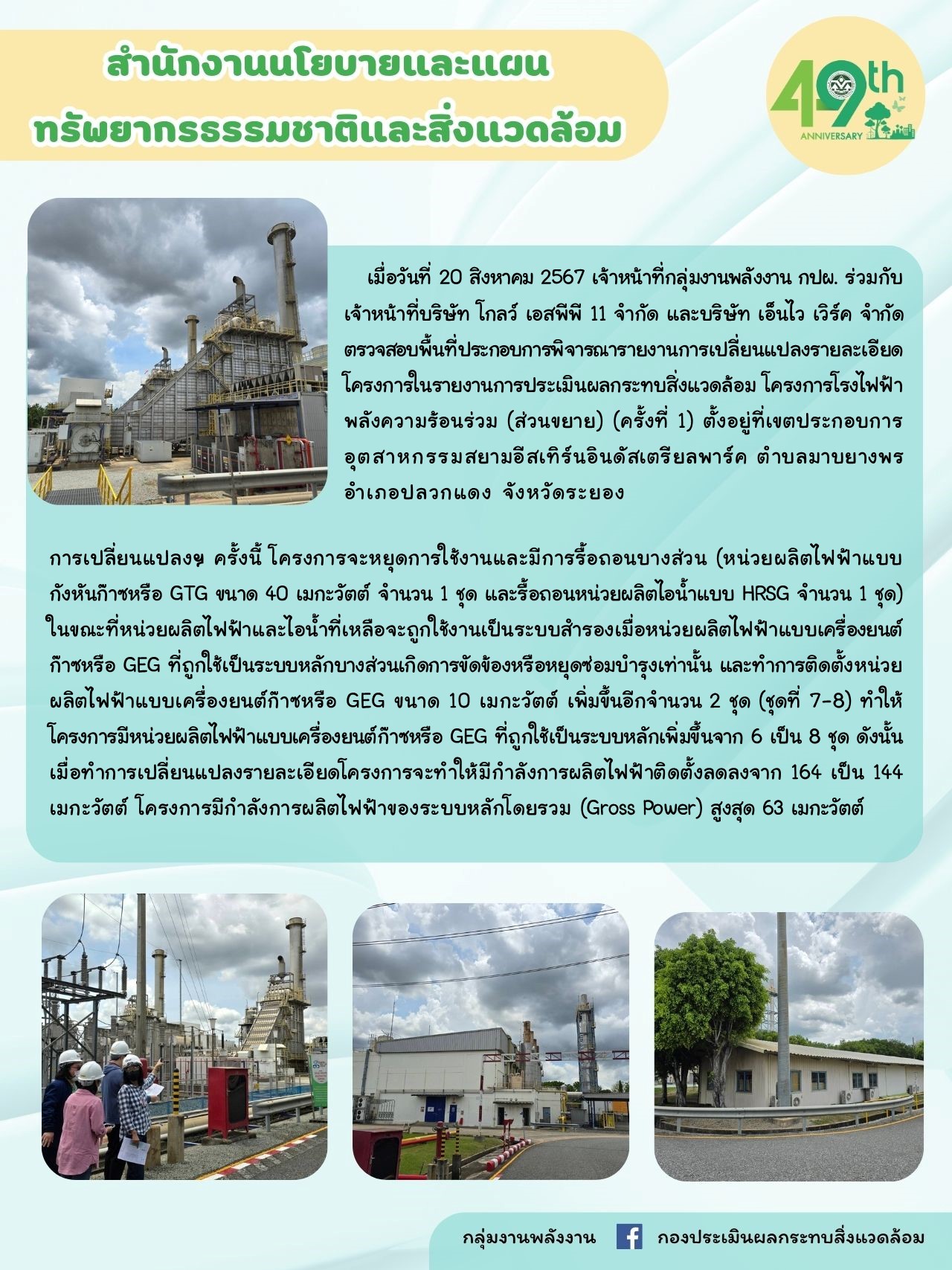 ตรวจสอบพื้นที่โครงการประกอบการพิจารณารายงานการขอเปลี่ยนแปลงรายละเอียดโครงการในรายงานประเมินผลกระทบสิ่งแวดล้อม โครงการโรงไฟฟ้าพลังความร้อนร่วม (ส่วนขยาย) (ครั้งที่ 1) ของบริษัท โกลว์ เอสพีพี 11 จำกัด