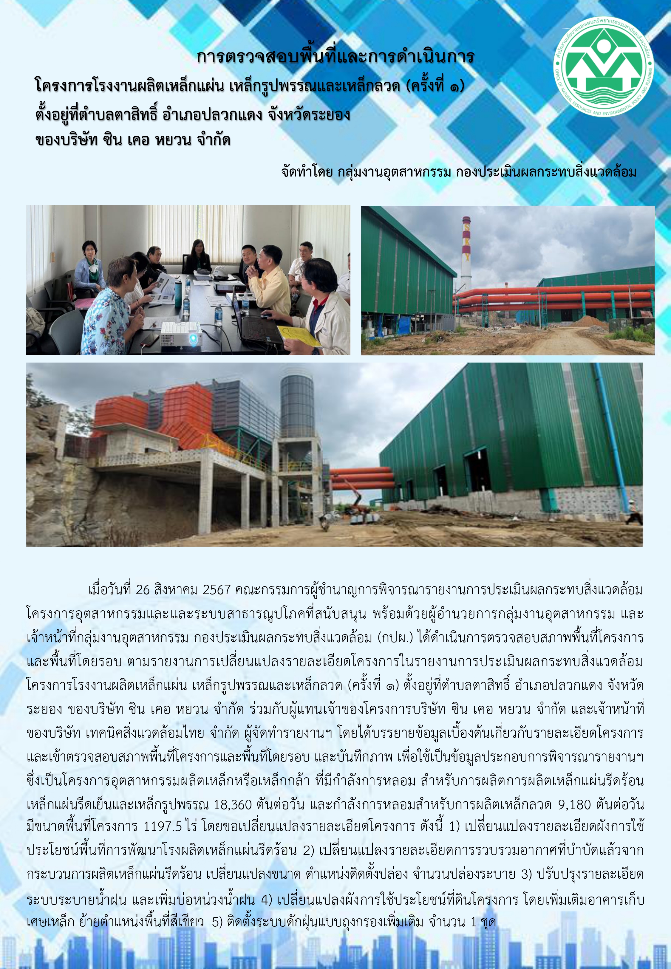 ตรวจพื้นที่และดำเนินโครงการโรงงานผลิตเหล็กแผ่น เหล็กรูปพรรณและเหล็กลวด (ครั้งที่ 1) ของบริษัท ซิน เคอ หยวน จำกัด