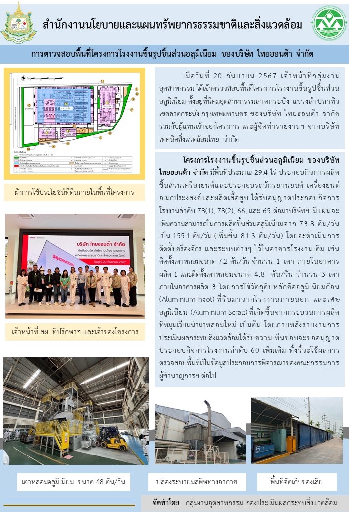การตรวจสอบพื้นที่โครงการโรงงานขึ้นรูปชิ้นส่วนอลูมิเนียม ของบริษัท ไทยฮอนด้า จำกัด
