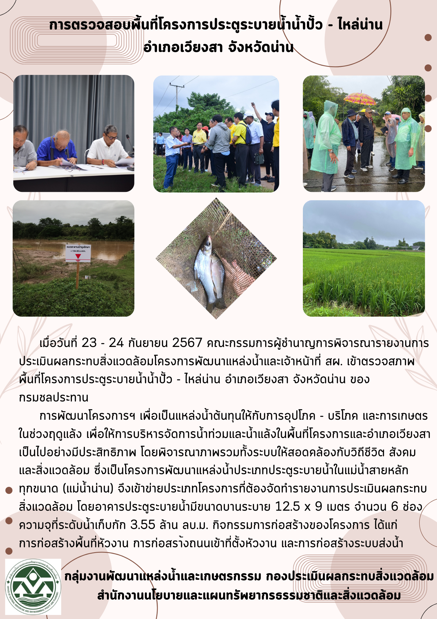 การตรวจสอบพื้นที่โครงการประตูระบายน้ำน้ำปั้ว - ไหล่น่าน อำเภอเวียงสา จังหวัดน่าน