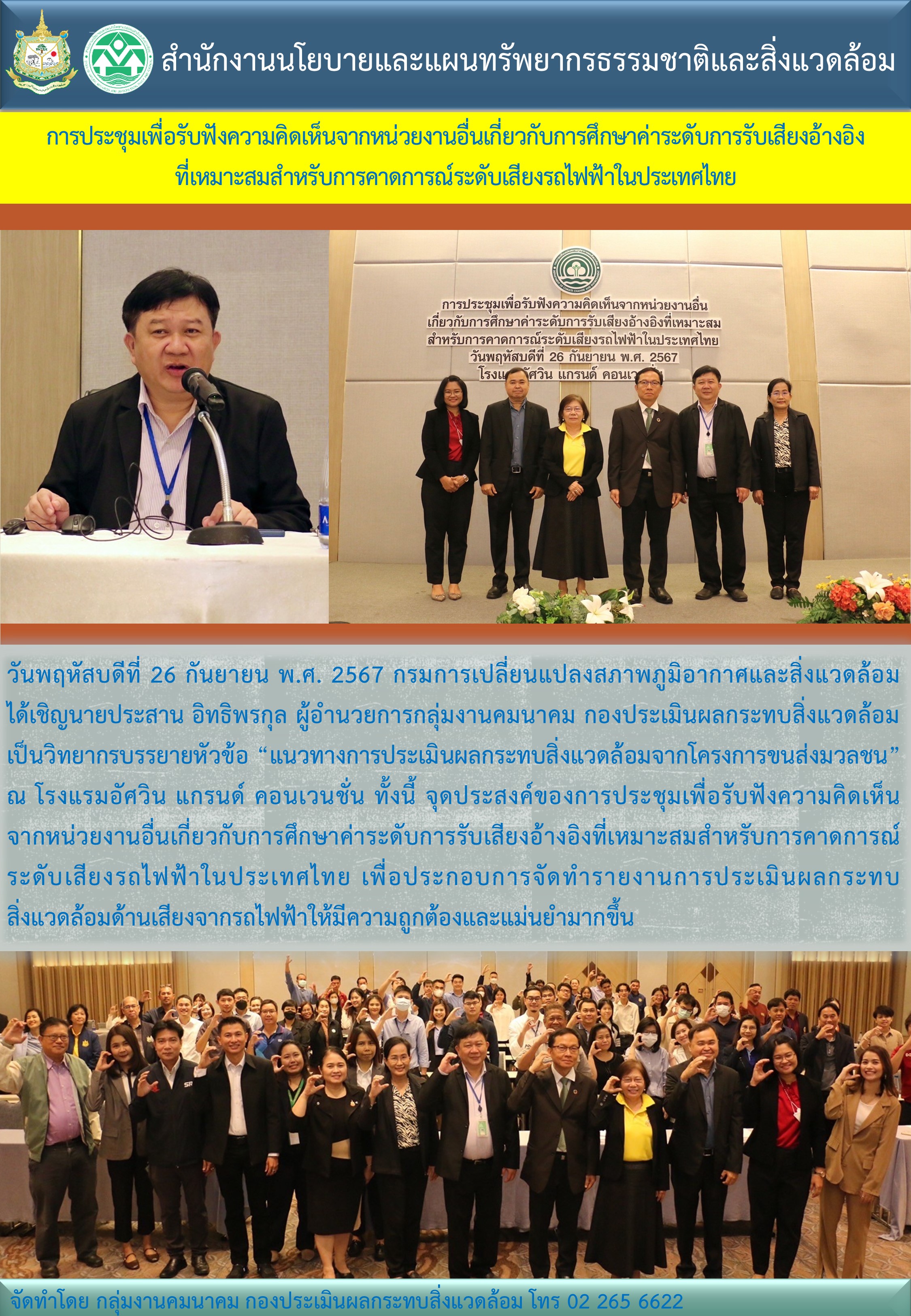 การประชุมเพื่อรับฟังความคิดเห็นจากหน่วยงานอื่นเกี่ยวกับการศึกษาค่าระดับการรับเสียงอ้างอิง ที่เหมาะสมสำหรับการคาดการณ์ระดับเสียงรถไฟฟ้าในประเทศไทย