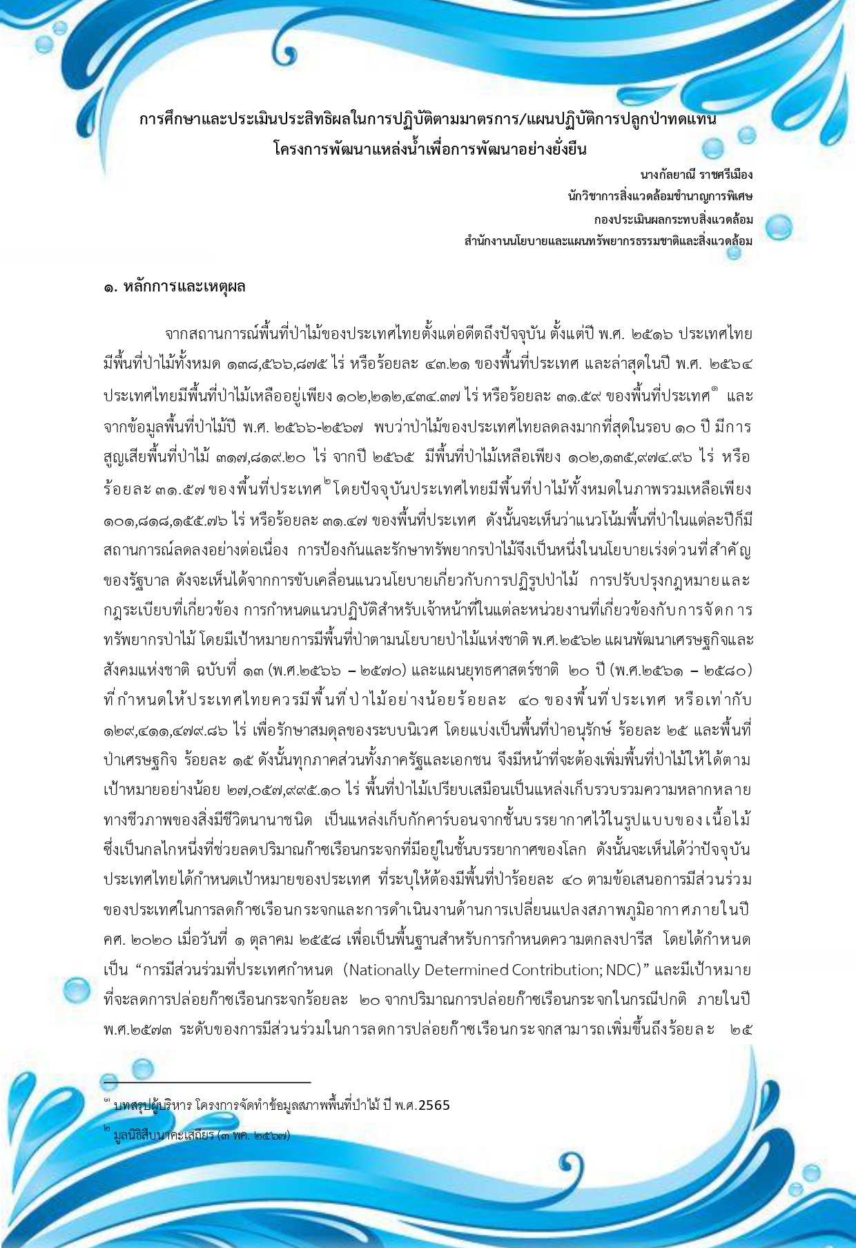 การศึกษาและประเมินประสิทธิผลในการปฏิบัติตามมาตรการฯ/แผนปฏิบัติการปลูกป่าทดแทน โครงการพัฒนาแหล่งน้ำ เพื่อการพัฒนาอย่างยั่งยืน