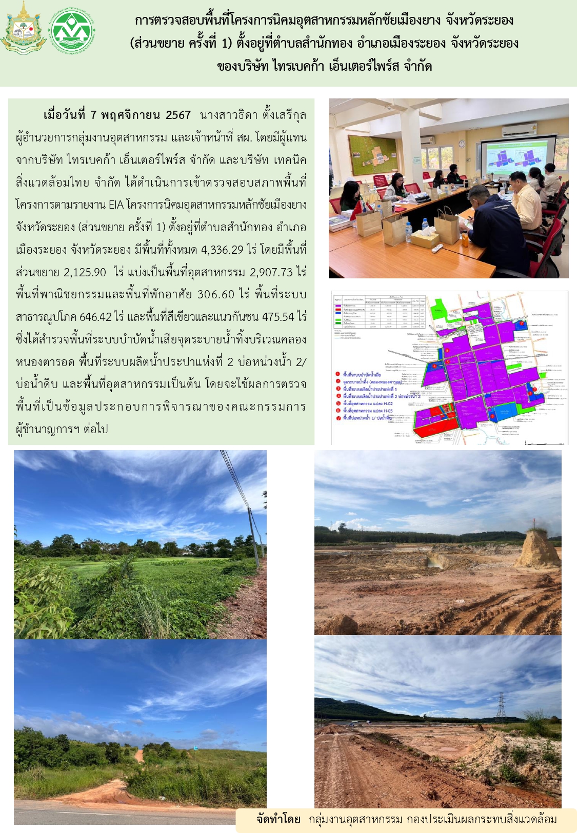 การตรวจสอบพื้นที่โครงการนิคมอุตสาหกรรมหลักชัยเมืองยาง จังหวัดระยอง (ส่วนขยาย ครั้งที่ 1) ของบริษัท ไทรเบคก้า เอ็นเตอร์ไพร์ส จากัด