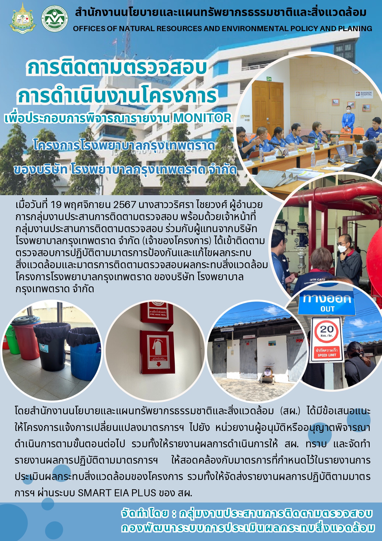 การติดตามตรวจสอบการดำเนินโครงการ เพื่อประกอบการพิจารณารายงาน Monitor โครงการโรงพยาบาลกรุงเทพตราด