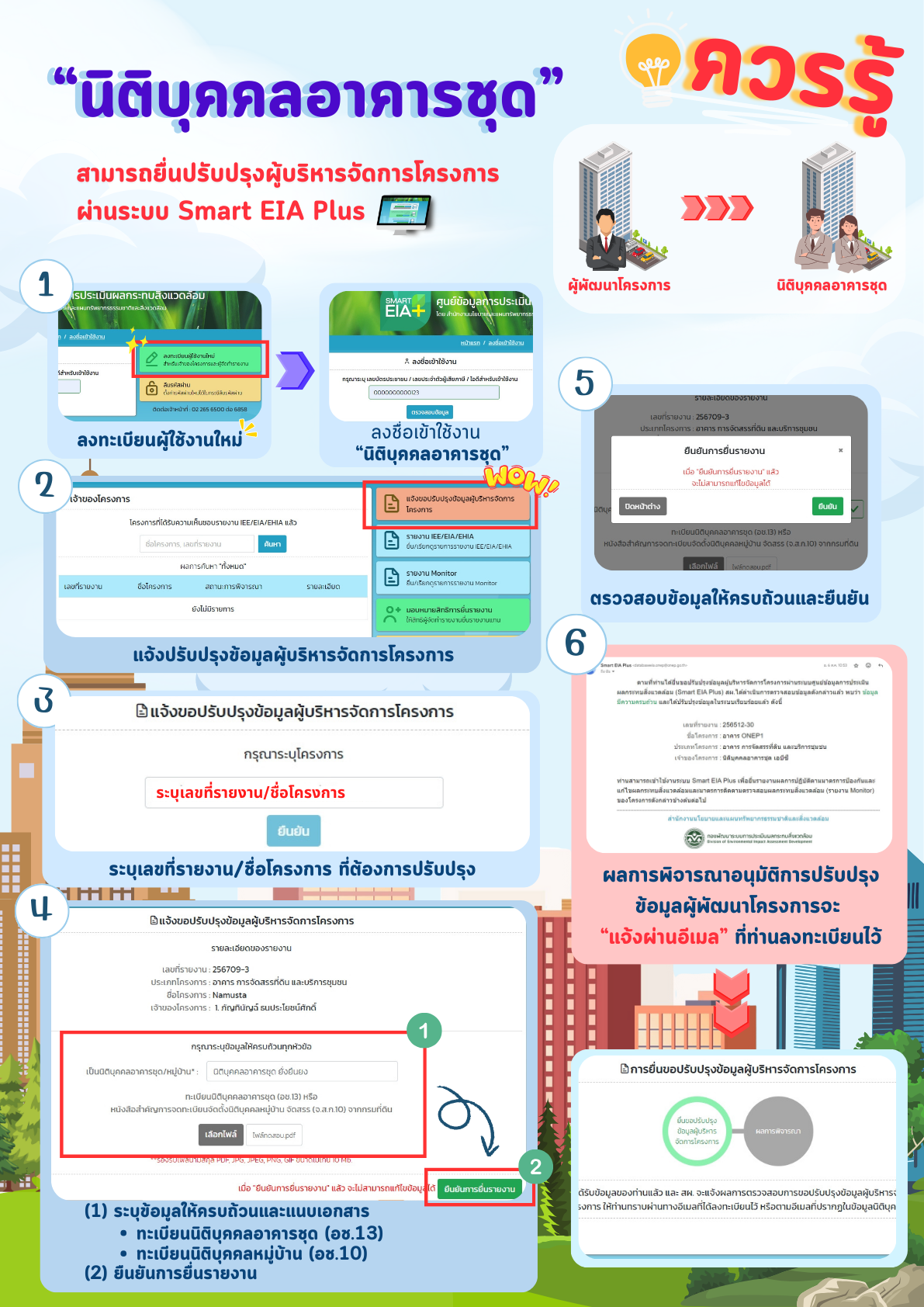 นิติบุคคลอาคารชุดยื่นปรับปรุงผู้บริหารจัดการโครงการ ผ่านระบบ Smart EIA Plus