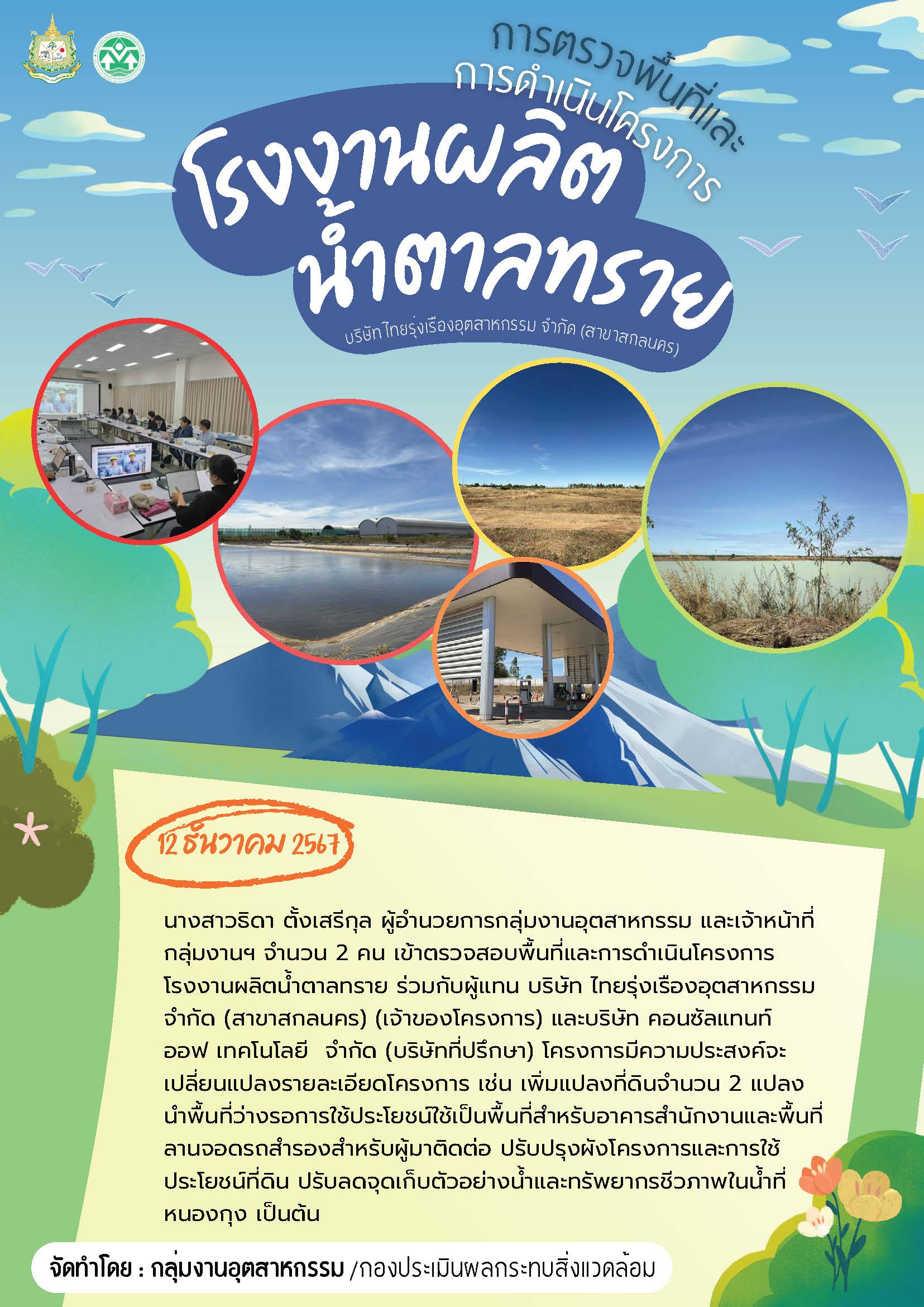 ผู้อำนวยการกลุ่มงานอุตสาหกรรม และเจ้าหน้าที่ กลุ่มงานฯ เข้าตรวจสอบพื้นที่และการดำเนินโครงการโรงงานผลิตน้ำตาลทราย