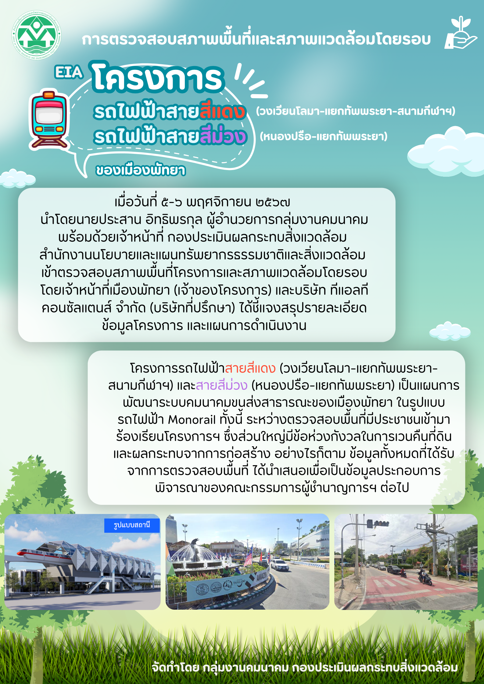 การตรวจสอบสภาพพื้นที่และสภาพแวดล้อมโดยรอบ โครงการรถไฟฟ้าสายสีม่วง และสายสีแดง ของเมืองพัทยา