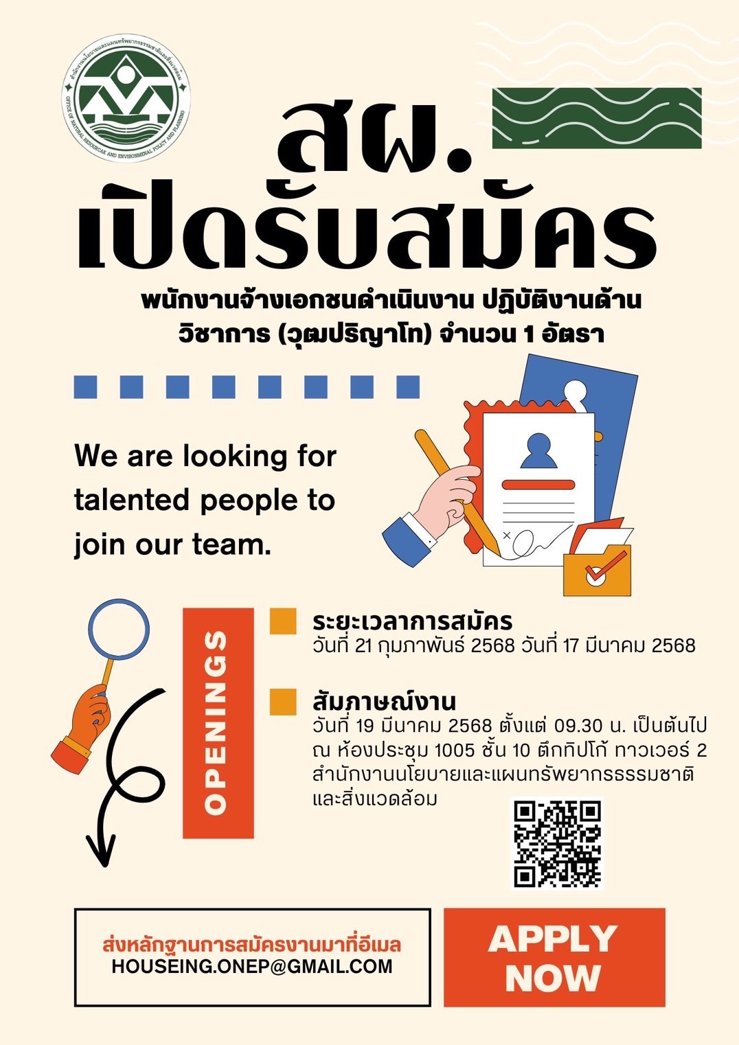 สผ. เปิดรับสมัครพนักงานจ้างเอกชนดำเนินงานปฏิบัติงานด้านวิชาการ (วุฒิปริญาโท) จำนวน 1 อัตรา