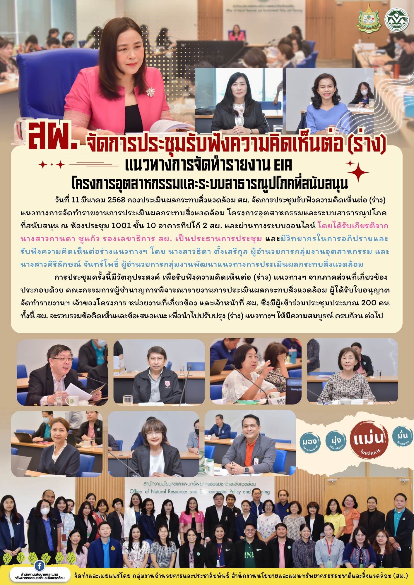 สผ. จัดการประชุมรับฟังความคิดเห็นต่อ (ร่าง) แนวทางการจัดทำรายงาน EIA โครงการอุตสาหกรรมและระบบสาธารณูปโภคที่สนับสนุน