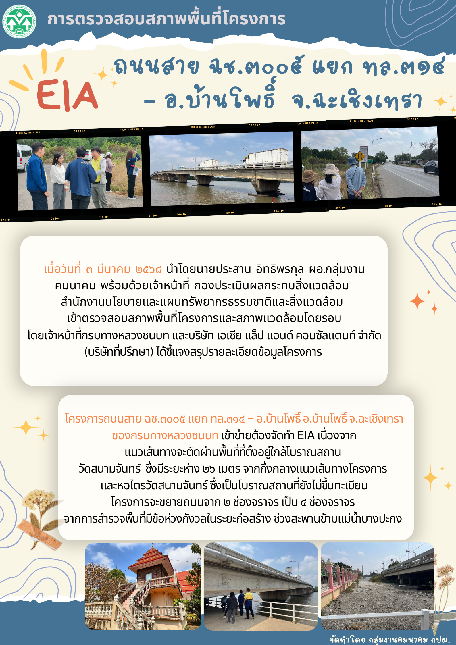 การตรวจสอบสภาพพื้นที่โครงการ ถนนสาย ฉช.3005 แยก ทล.314 EIA - อ.บ้านโพธิ์ จ.ฉะเชิงเทรา