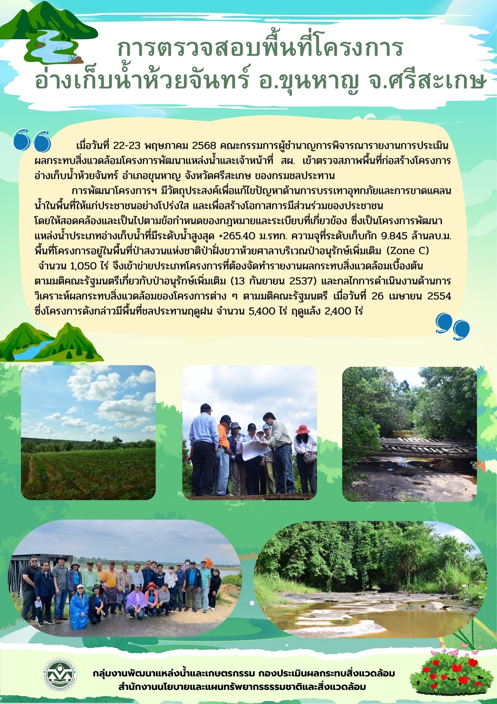 การตรวจสอบพื้นที่โครงการอ่างเก็บน้ำห้วยจันทร์ อำเภอขุนหาญ จังหวัดศรีสะเกษ