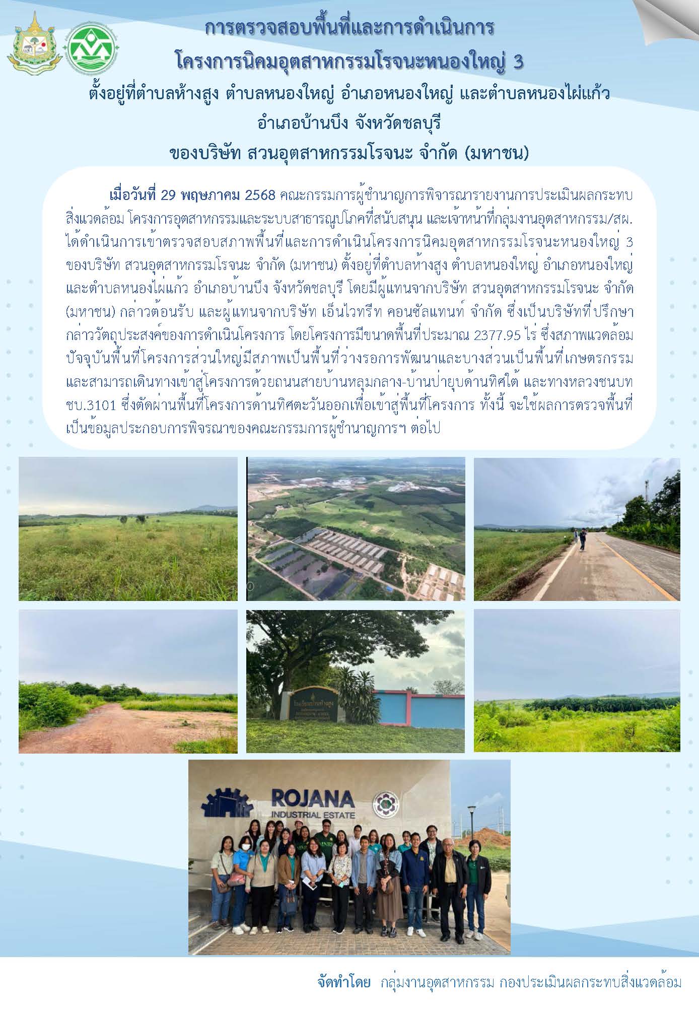 การตรวจพื้นที่และการดำเนินการโครงการนิคมอุตสาหกรรมโรจนะหนองใหญ่ 3 ของบริษัท สวนอุตสาหกรรมโรจนะ จำกัด (มหาชน)