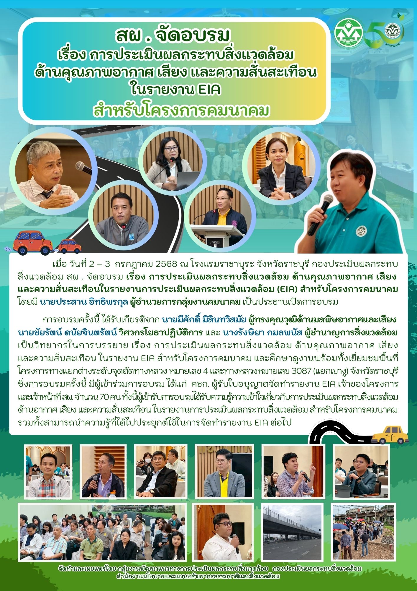 สผ . จัดอบรม เรื่อง การประเมินผลกระทบสิ่งแวดล้อม ด้านคุณภาพอากาศ เสียง และความสั่นสะเทือนในรายงานการประเมินผลกระทบสิ่งแวดล้อม (EIA) สำหรับโครงการคมนาคม