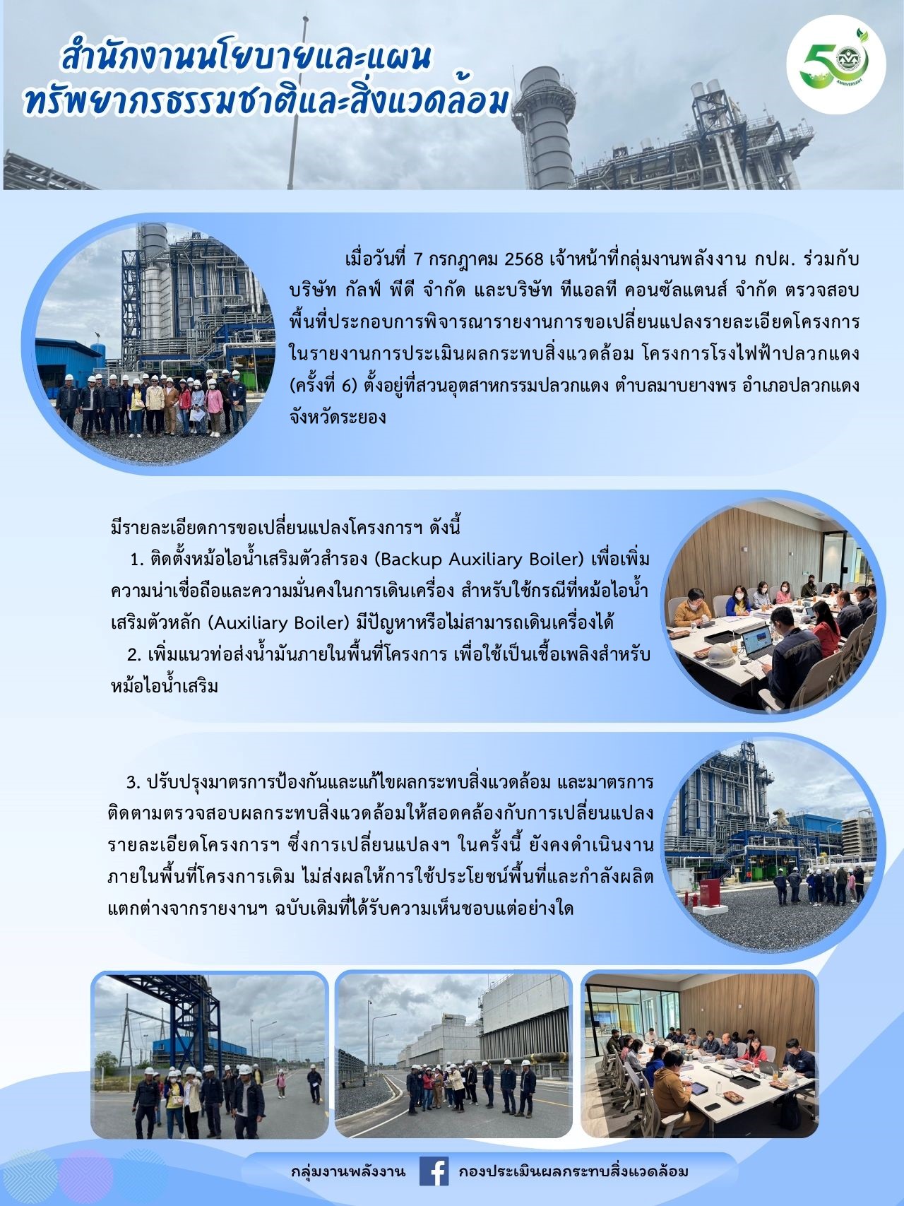ตรวจสอบพื้นที่โครงการประกอบการพิจารณารายงานการขอเปลี่ยนแปลงรายละเอียดโครงการในรายงานการประเมินผลกระทบสิ่งแวดล้อม โครงการโรงไฟฟ้าปลวกแดง (ครั้งที่ 6)