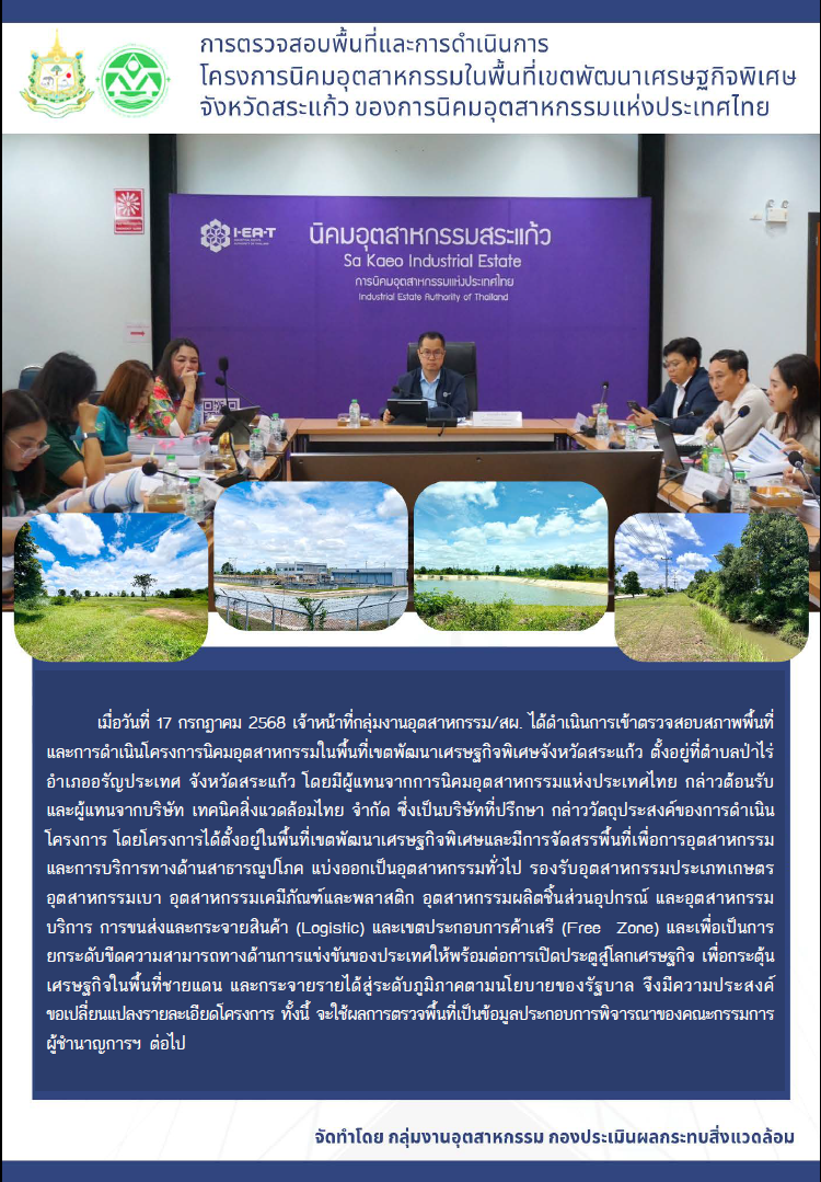 การตรวจพื้นที่และการดำเนินการโครงการนิคมอุตสาหกรรมในพื้นที่เขตพัฒนาเศรษฐกิจพิเศษจังหวัดสระแก้ว (ครั้งที่ 1) ของการนิคมอุตสาหกรรมแห่งประเทศไทย