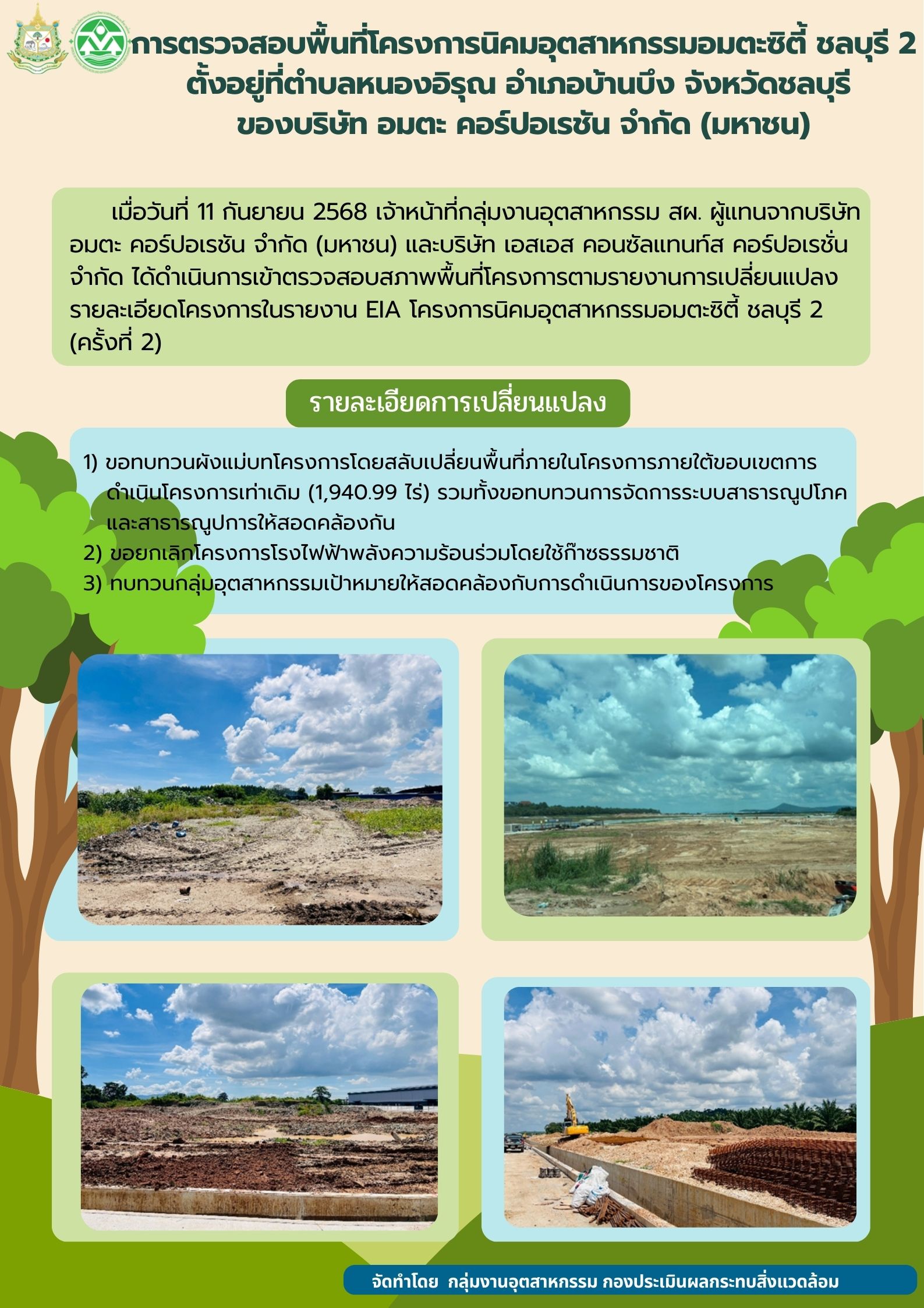 การตรวจสอบพื้นที่ในรายงานการเปลี่ยนแปลงรายละเอียดโครงการในรายงานการประเมินผลกระทบสิ่งแวดล้อมโครงการนิคมอุตสาหกรรมอมตะซิตี้ ชลบุรี 2 (ครั้งที่ 2) ของบริษัท อมตะ คอร์ปอเรชัน จำกัด (มหาชน) เมื่อวันที่ 11 กันยายน 2568