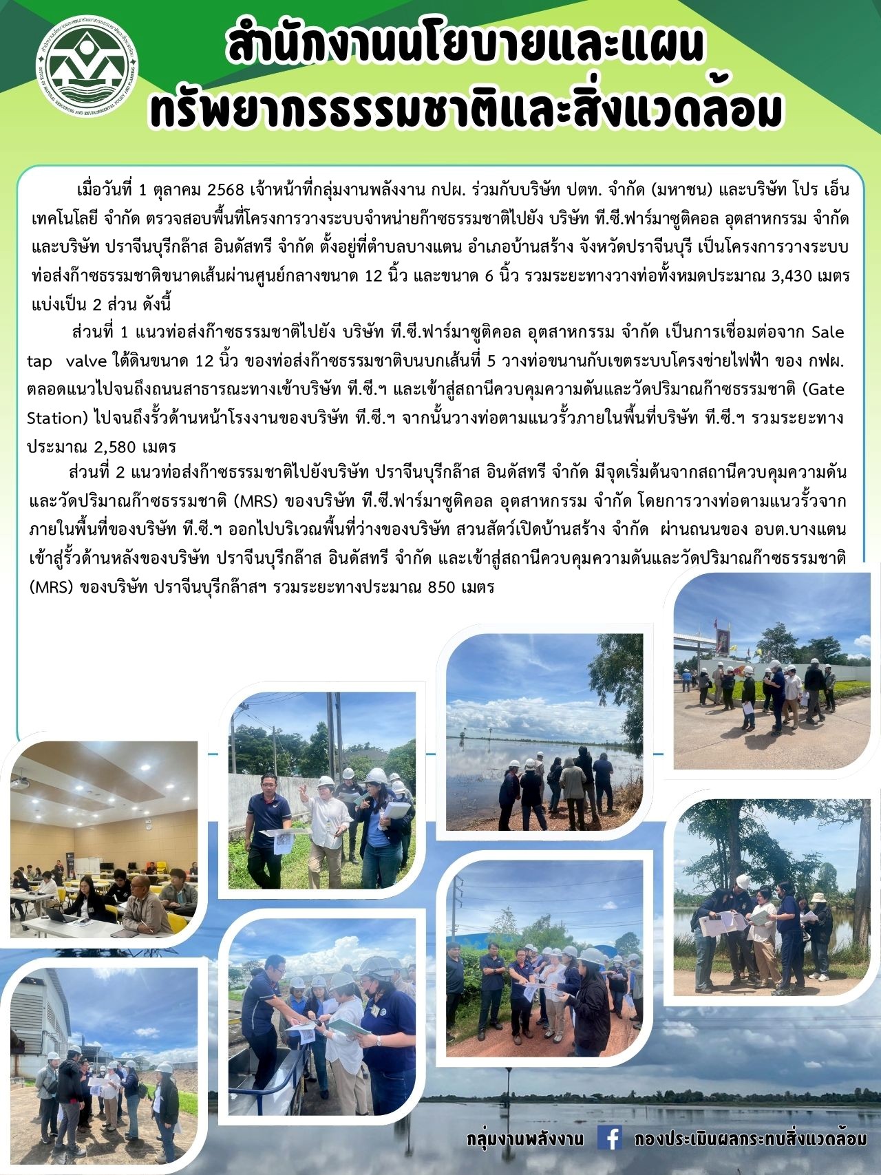 การตรวจสอบพื้นที่โครงการวางระบบจำหน่ายก๊าซธรรมชาติไปยัง บริษัท ที.ซี.ฟาร์มาซูติคอล อุตสาหกรรม จำกัดและบริษัท ปราจีนบุรีกล๊าส อินดัสทรี จำกัด ของบริษัท ปตท. จำกัด (มหาชน) เมื่อวันที่ 1 ตุลาคม 2568
