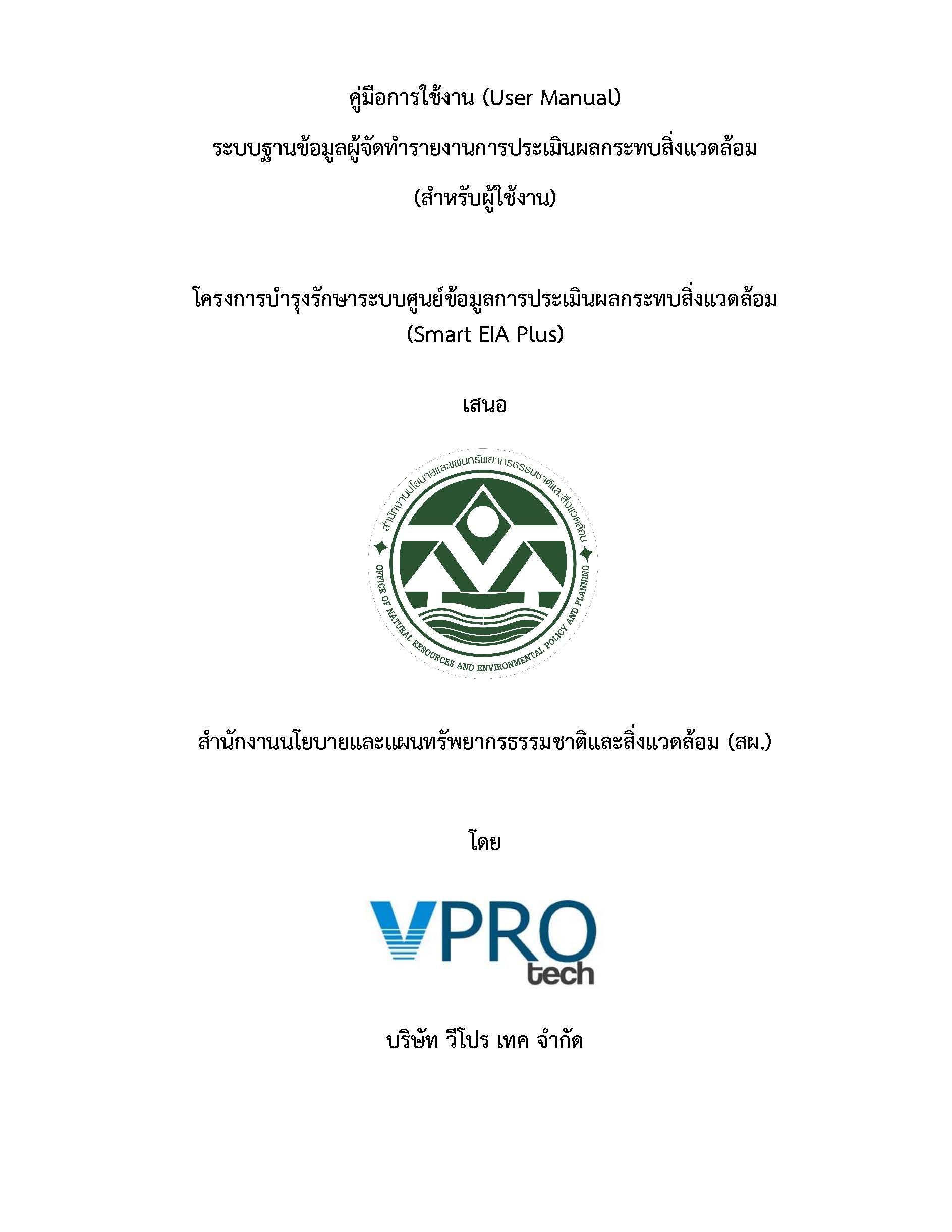 คู่มือการใช้งาน ระบบฐานข้อมูลผู้จัดทำรายงานการประเมินผลกระทบสิ่งแวดล้อม (สำหรับผู้ใช้งาน)