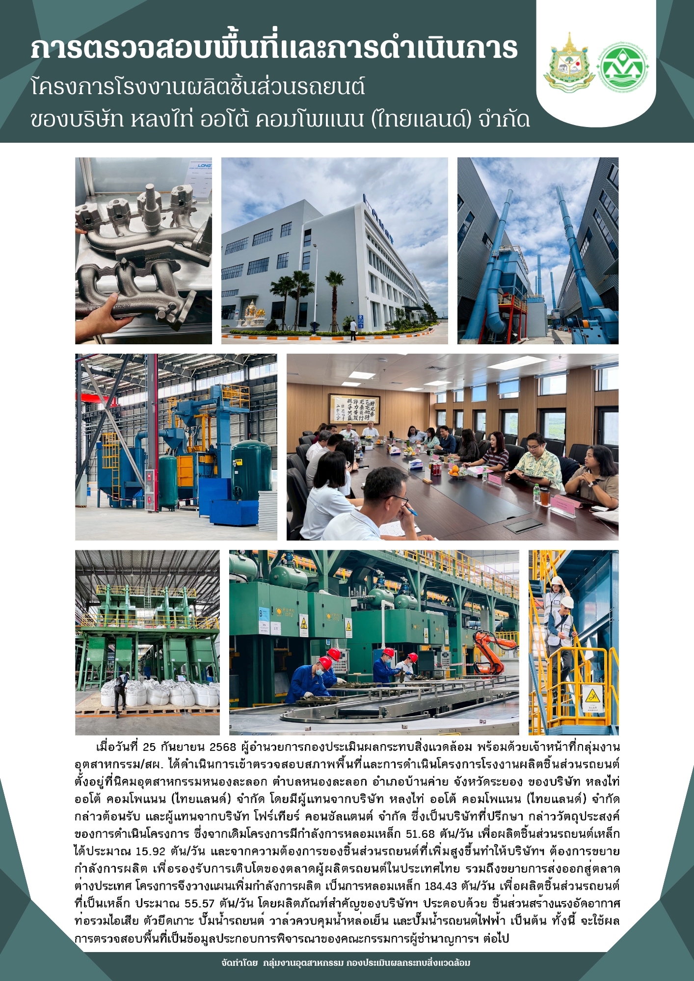 การตรวจสอบพื้นที่ประกอบการพิจารณารายงานการประเมินผลกระทบโครงการโรงงานผลิตชิ้นส่วนรถยนต์ ของบริษัท หลงไท่ออโต้ คอมโพแนน (ไทยแลนด์) จำกัด เมื่อวันที่ 25 กันยายน 2568