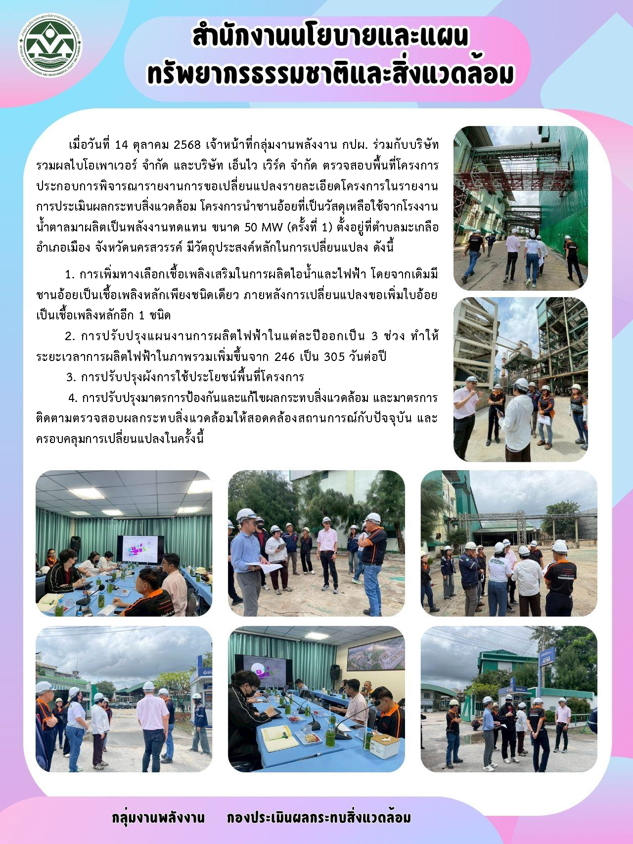 การตรวจสอบพื้นที่โครงการนำชานอ้อยที่เป็นวัสดุเหลือใช้จากโรงงานน้ำตาลมาผลิตเป็นพลังงานทดแทน ขนาด 50 MW (ครั้งที่ 1) ของบริษัท รวมผลไบโอเพาเวอร์ จำกัด เมื่อวันที่ 14 ตุลาคม 2568