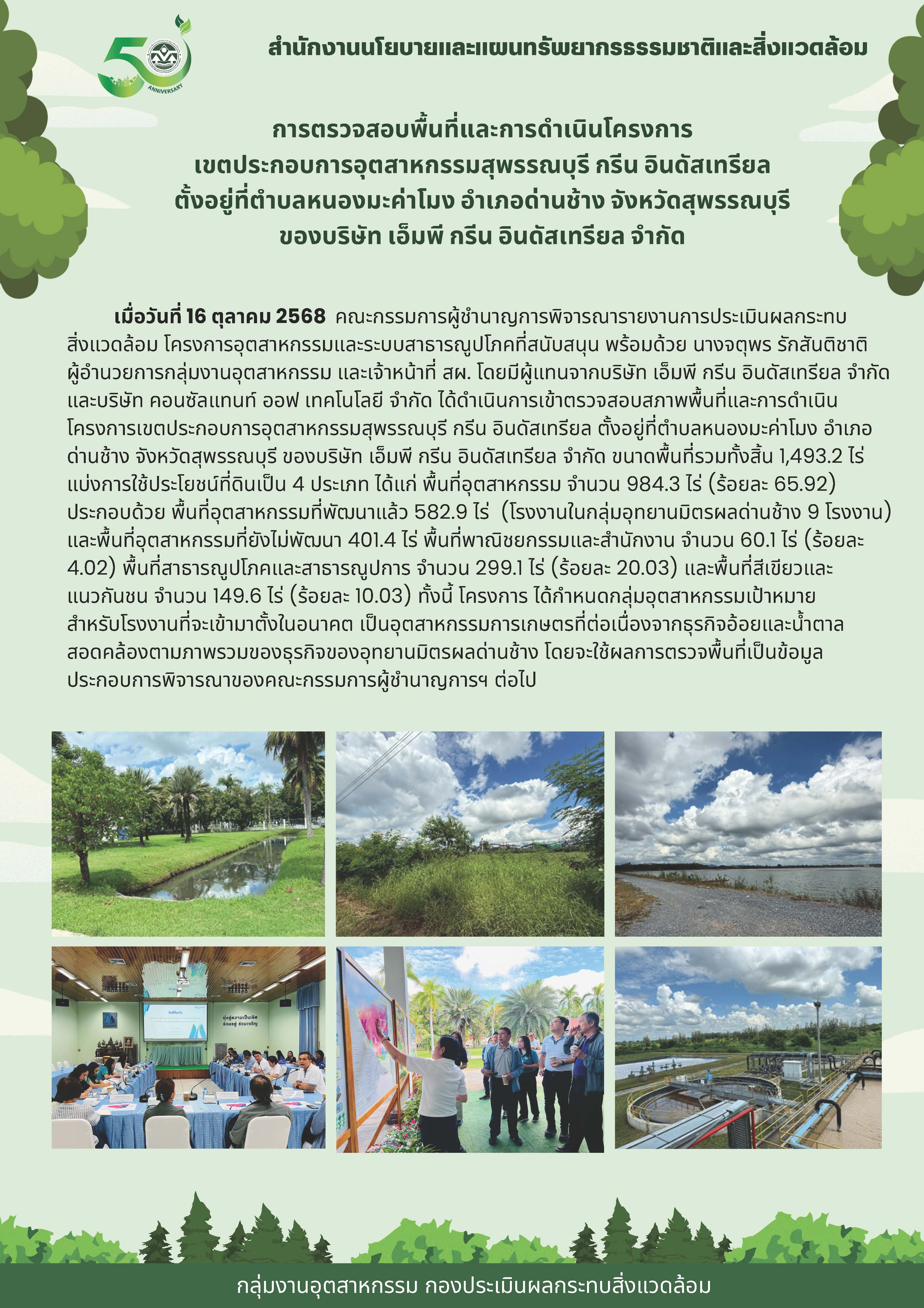 การตรวจสอบพื้นที่และการดำเนินการโครงการเขตประกอบการอุตสาหกรรมสุพรรณบุรี กรีน อินดัสเทรียล ของบริษัท เอ็มพี กรีน อินดัสเทรียล จำกัด เมื่อวันที่ 16 ตุลาคม 2568