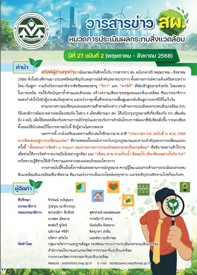 วารสารข่าว สผ. หมวดการประเมินผลกระทบสิ่งแวดล้อม ปีที่ 27 ฉบับที่ 2 (พฤษภาคม - สิงหาคม 2568) อ่านแบบ Filp book