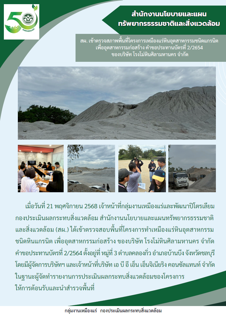 การตรวจสอบสภาพพื้นที่โครงการทำเหมืองแร่หินอุตสาหกรรมชนิดหินแกรนิต เพื่ออุตสาหกรรมก่อสร้าง คำขอประทานบัตรที่ 2/2564 ของบริษัท โรงโม่หินศิลามหานคร จำกัด