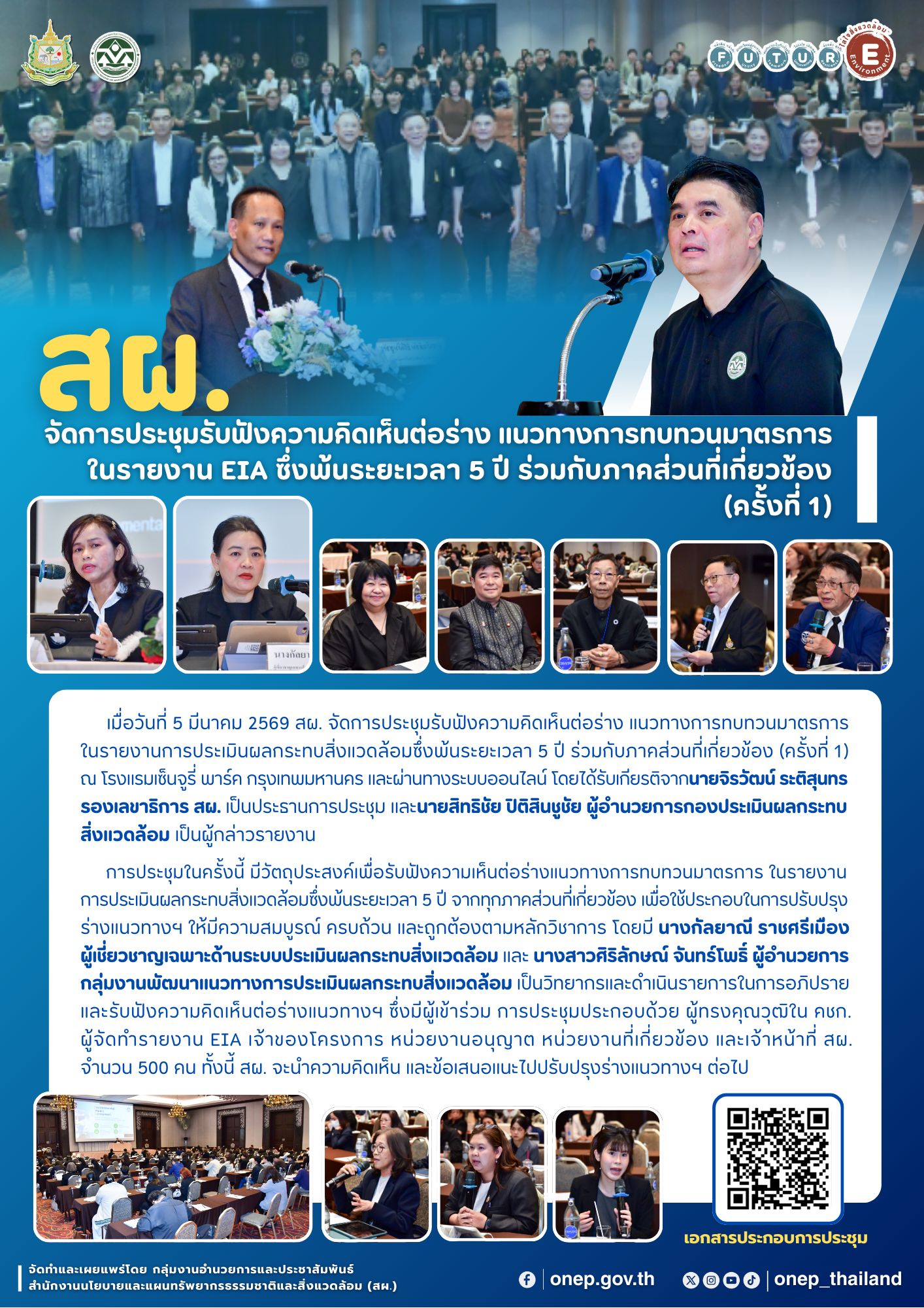 สผ. จัดการประชุมรับฟังความคิดเห็นต่อ (ร่าง) แนวทางการทบทวนมาตรการในรายงาน EIA ซึ่งพ้นระยะเวลา 5 ปี ร่วมกับภาคส่วนที่เกี่ยวข้อง (ครั้งที่ 1)
