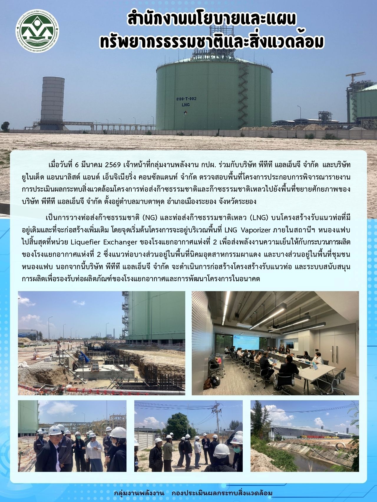 การตรวจสอบพื้นที่โครงการท่อส่งก๊าซธรรมชาติและก๊าซธรรมชาติเหลวไปยังพื้นที่ขยายศักยภาพ ของบริษัท พีทีที แอลเอ็นจี จำกัด เมื่อวันที่ 6 มีนาคม 2569