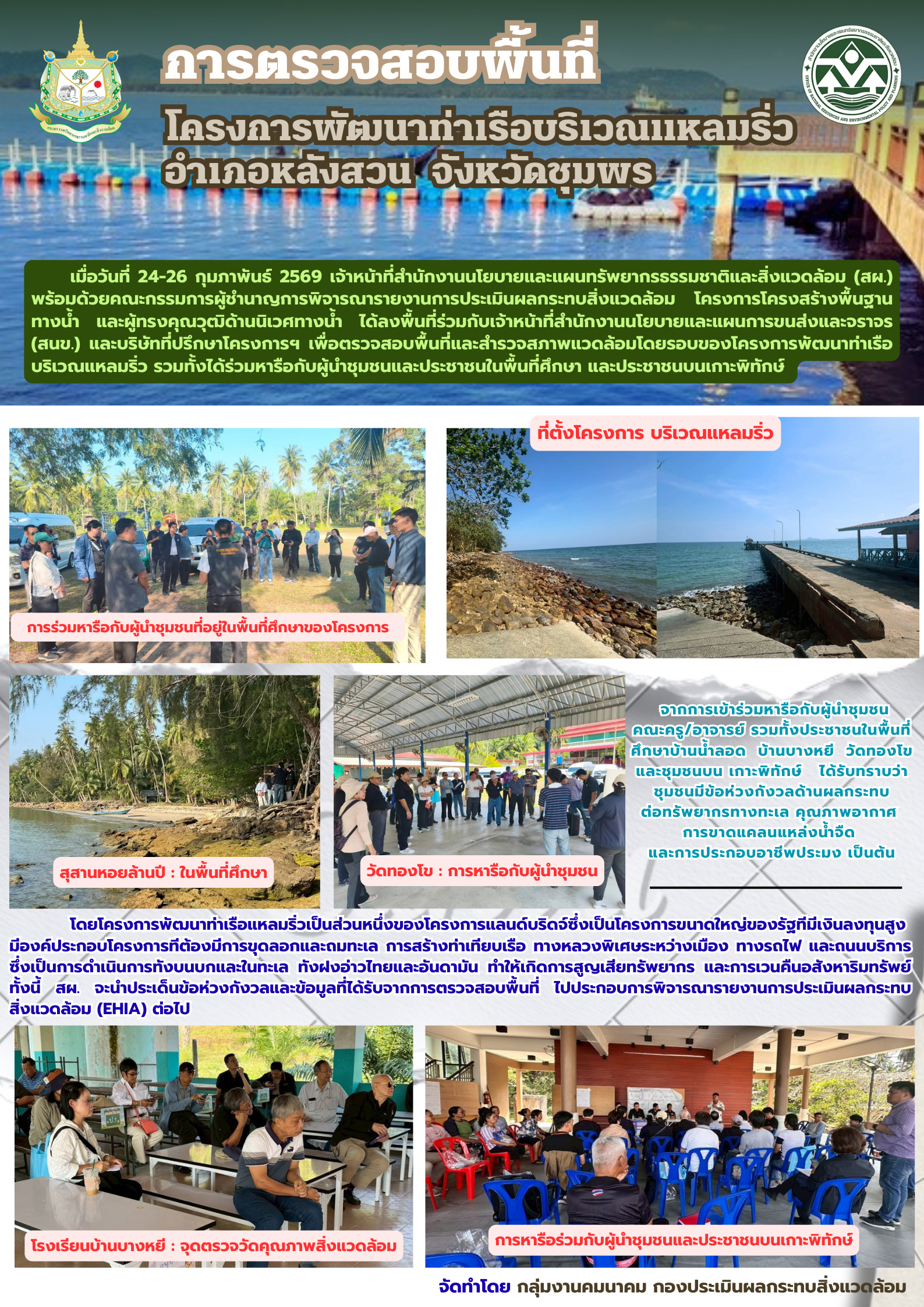 การตรวจสอบพื้นที่ของโครงการพัฒนาท่าเรือบริเวณแหลมริ่ว ของสำนักงานนโยบายและแผนการขนส่งและจราจร