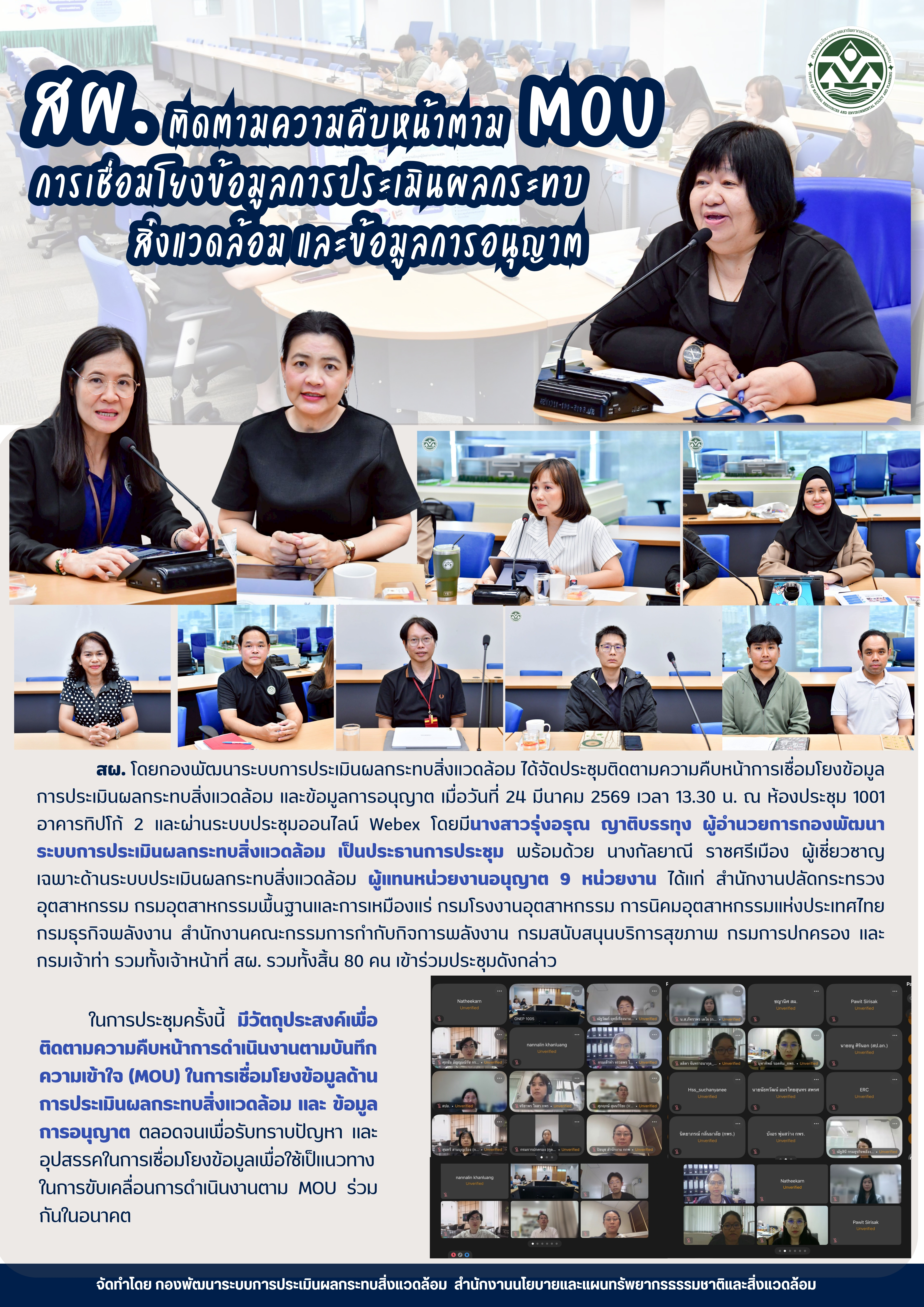 การประชุมติดตามความคืบหน้าตาม MOU การเชื่อมโยงข้อมูลการประเมินผลกระทบสิ่งแวดล้อมและข้อมูลการอนุญาต