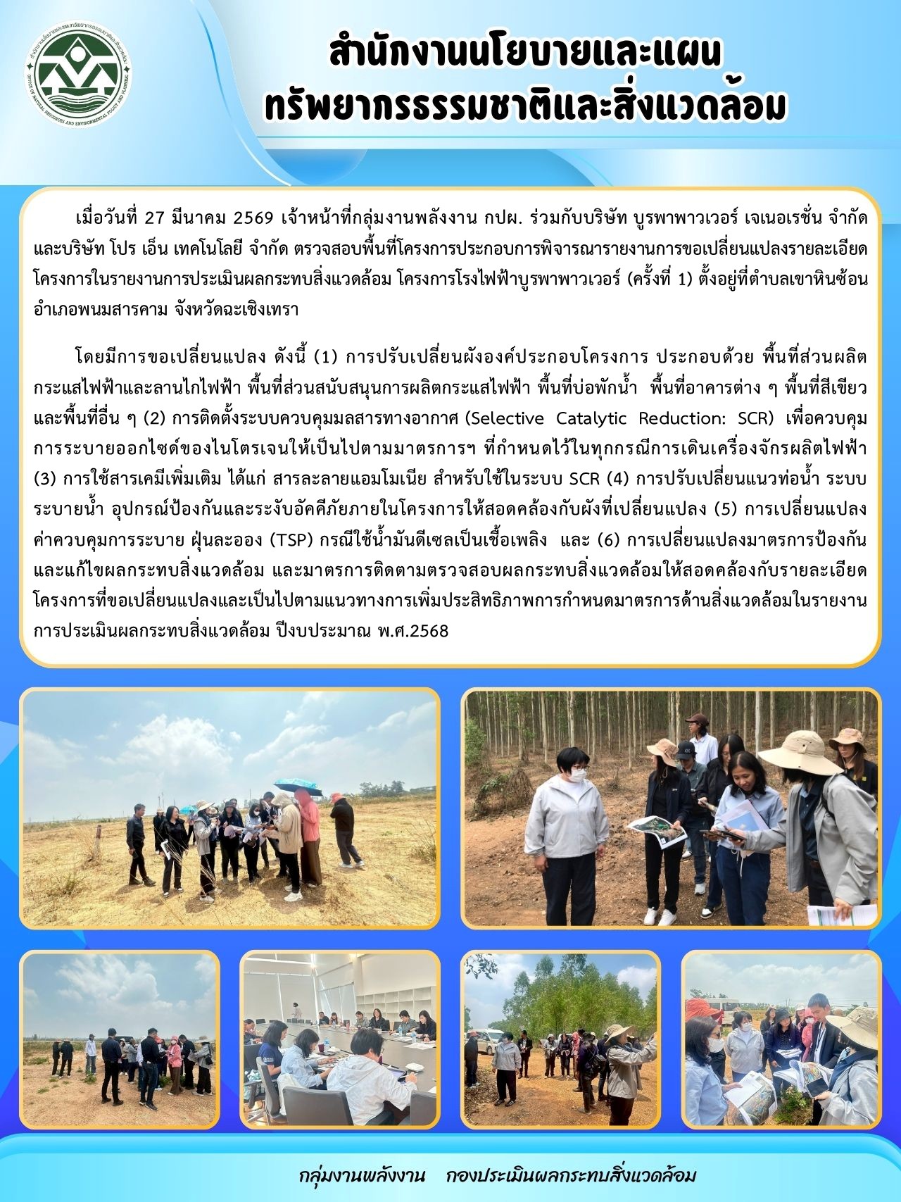 ตรวจสอบพื้นที่โครงการประกอบการพิจารณารายงานการขอเปลี่ยนแปลงรายละเอียดโครงการในรายงานการประเมินผลกระทบสิ่งแวดล้อม โครงการโรงไฟฟ้าบูรพาพาวเวอร์ (ครั้งที่ 1)