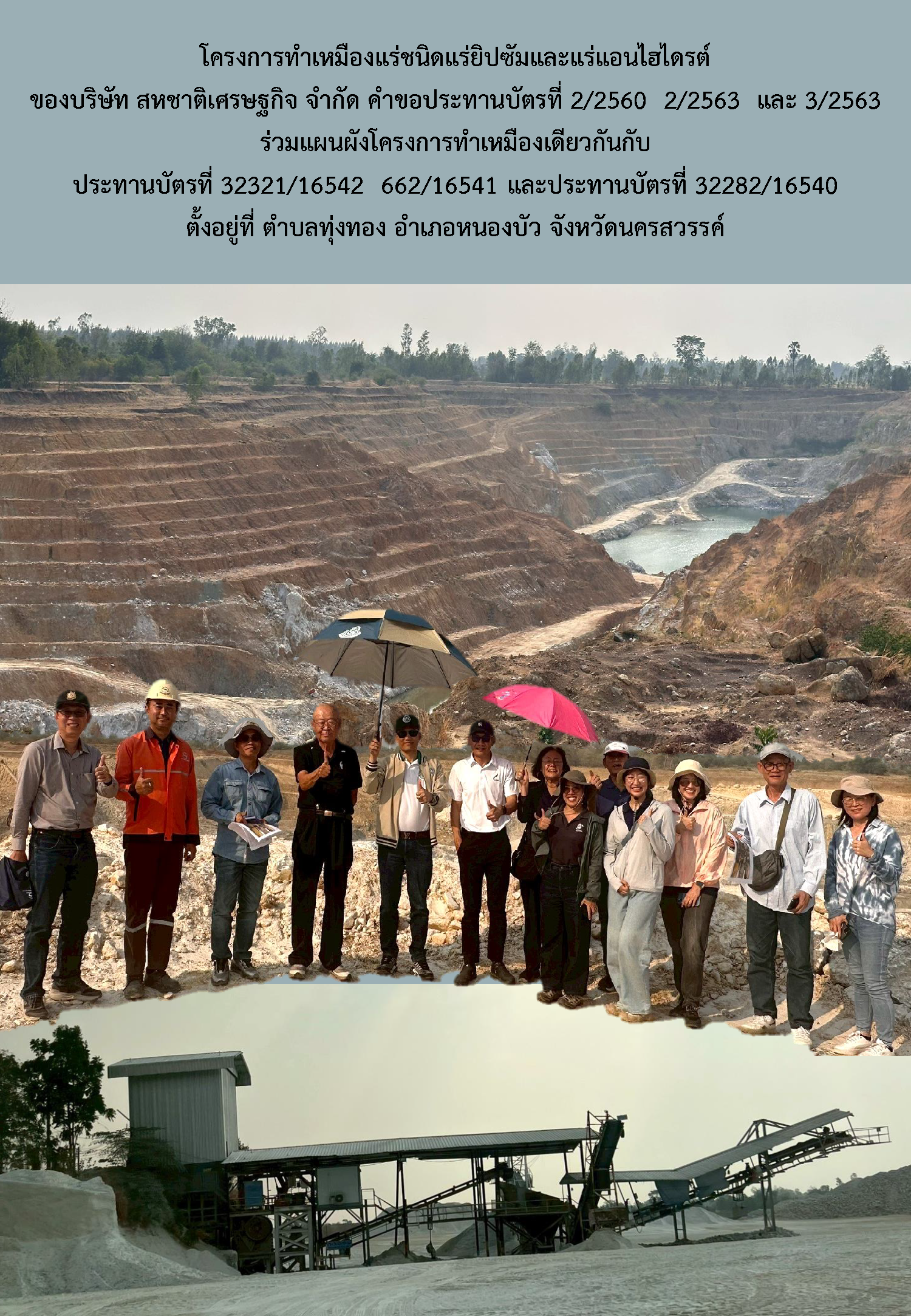 การตรวจสอบพื้นที่โครงการทำเหมืองแร่ชนิดแร่ยิปซัมและแร่แอนไฮไดรต์ ของบริษัท สหชาติเศรษฐกิจ จำกัด