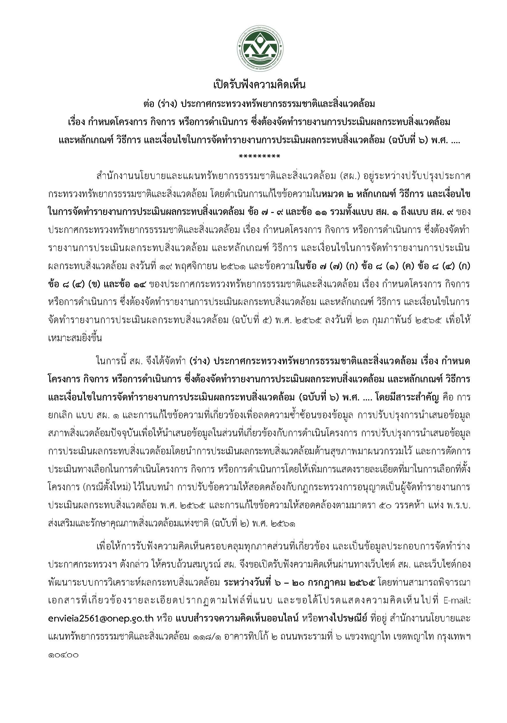 เปิดรับฟังระหว่างวันที่ 6- 20 กรกฎาคม 2565