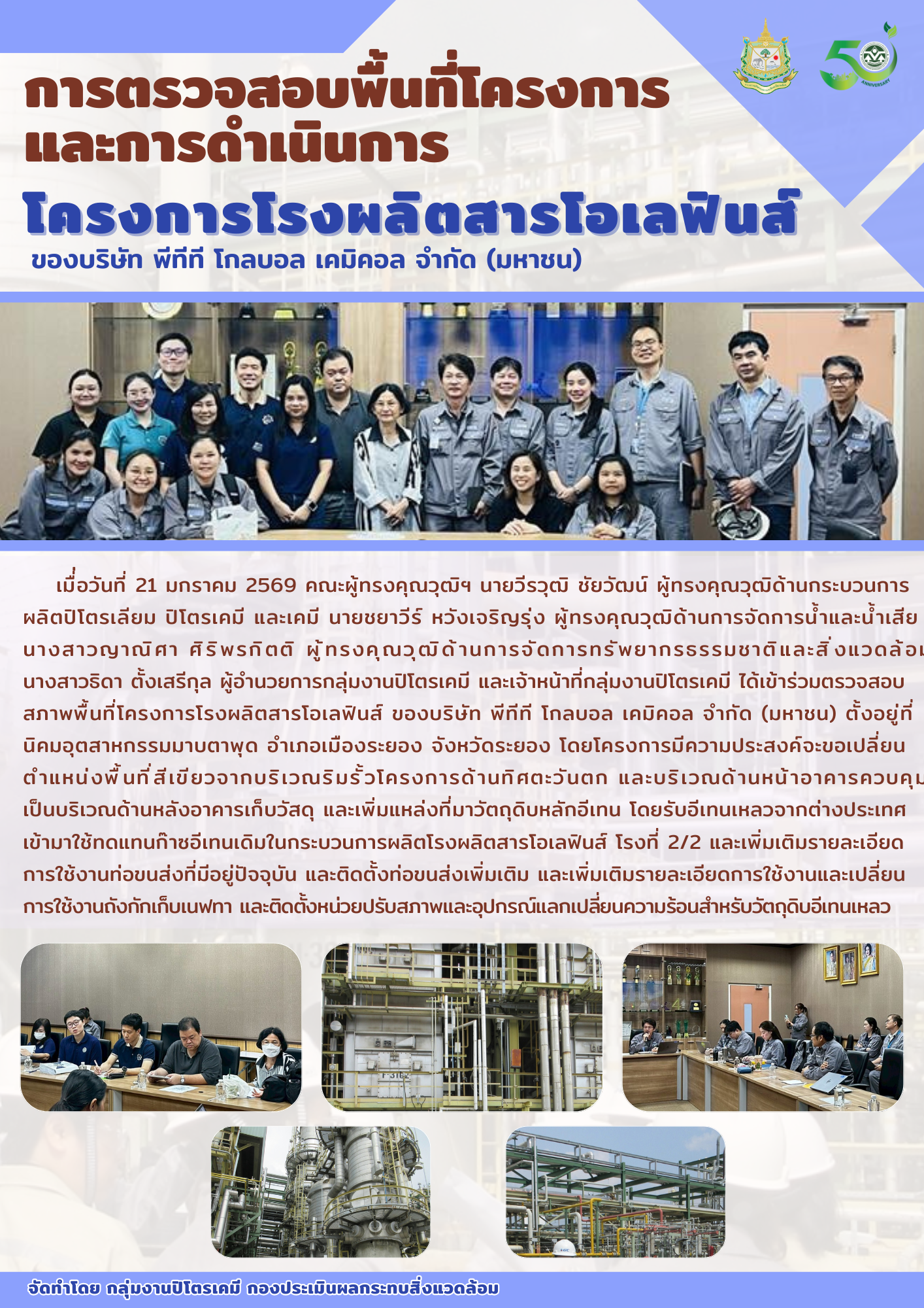 การตรวจสอบพื้นที่โครงการและการดำเนินการโครงการโรงผลิตสารโอเลฟินส์ ของบริษัท พีทีที โกลบอล เคมิคอล จำกัด (มหาชน)