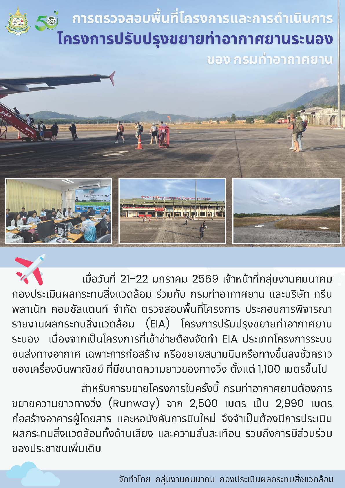 การตรวจสอบพื้นที่โครงการและการดำเนินการ โครงการปรับปรุงขยายท่าอากาศยานระนอง ของกรมท่าอากาศยาน