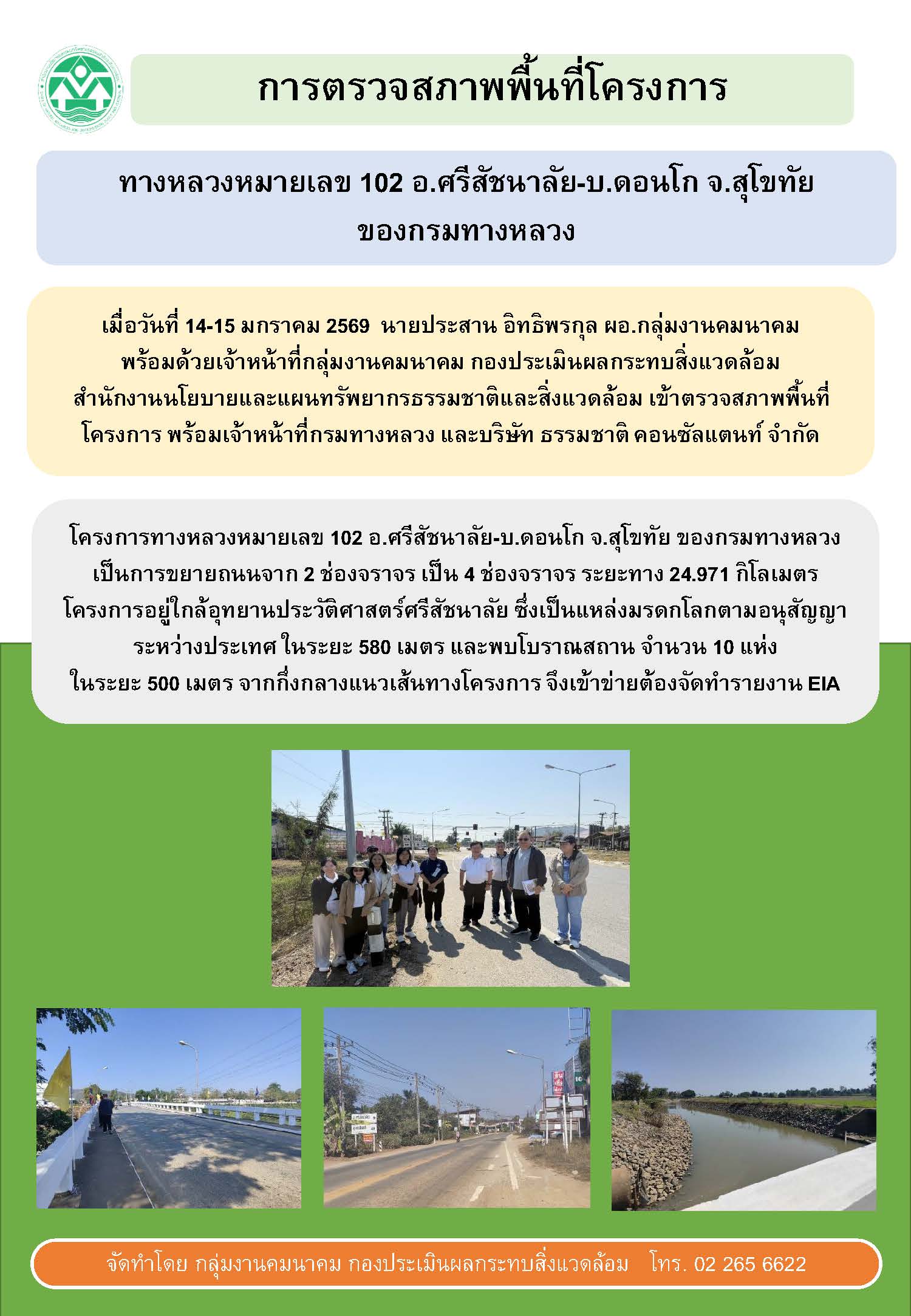 การตรวจสภาพพื้นที่โครงการทางหลวงหมายเลข 102 อ.ศรีสัชนาลัย-บ.ดอนโก จ.สุโขทัย ของกรมทางหลวง